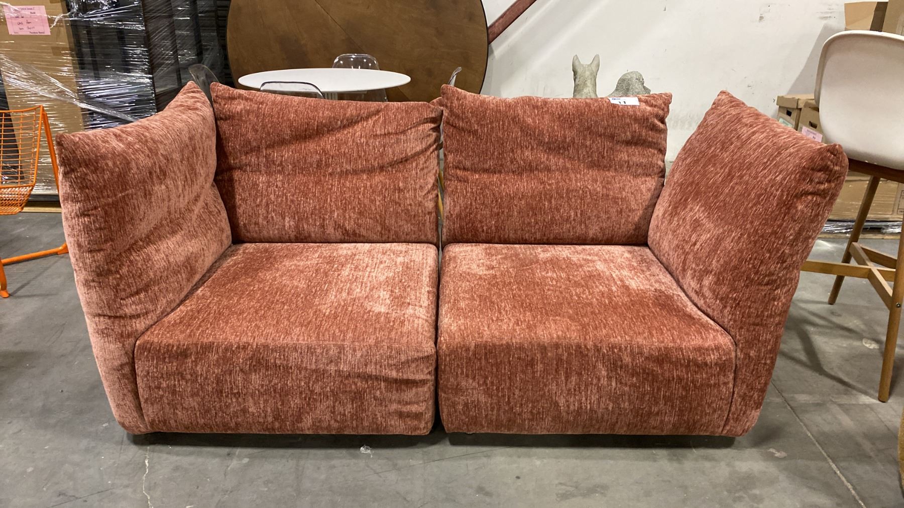 ROSE COLORED TWO PIECE UPHOLSTERED SOFA