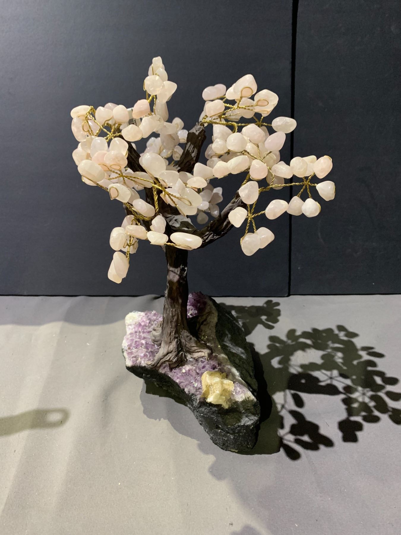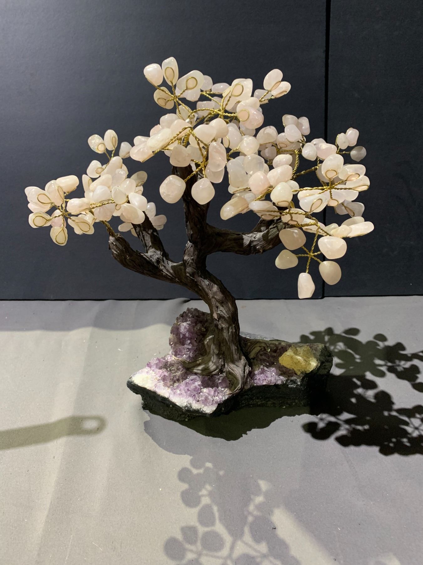 ROSE QUARTZ 14" BONSAI TREE WITH AMETHYST BASE RETAIL $2400