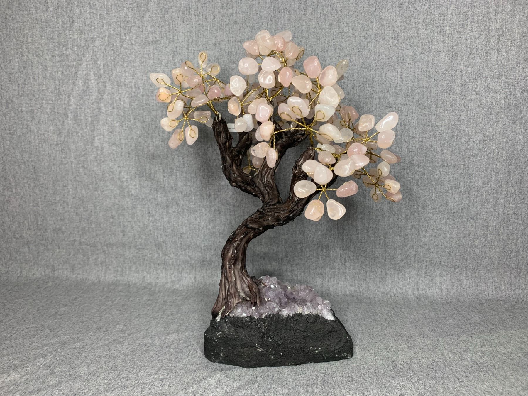 ROSE QUARTZ TREE ON AMETHYST BASE (BRAZIL) 15" RETAIL $2,400