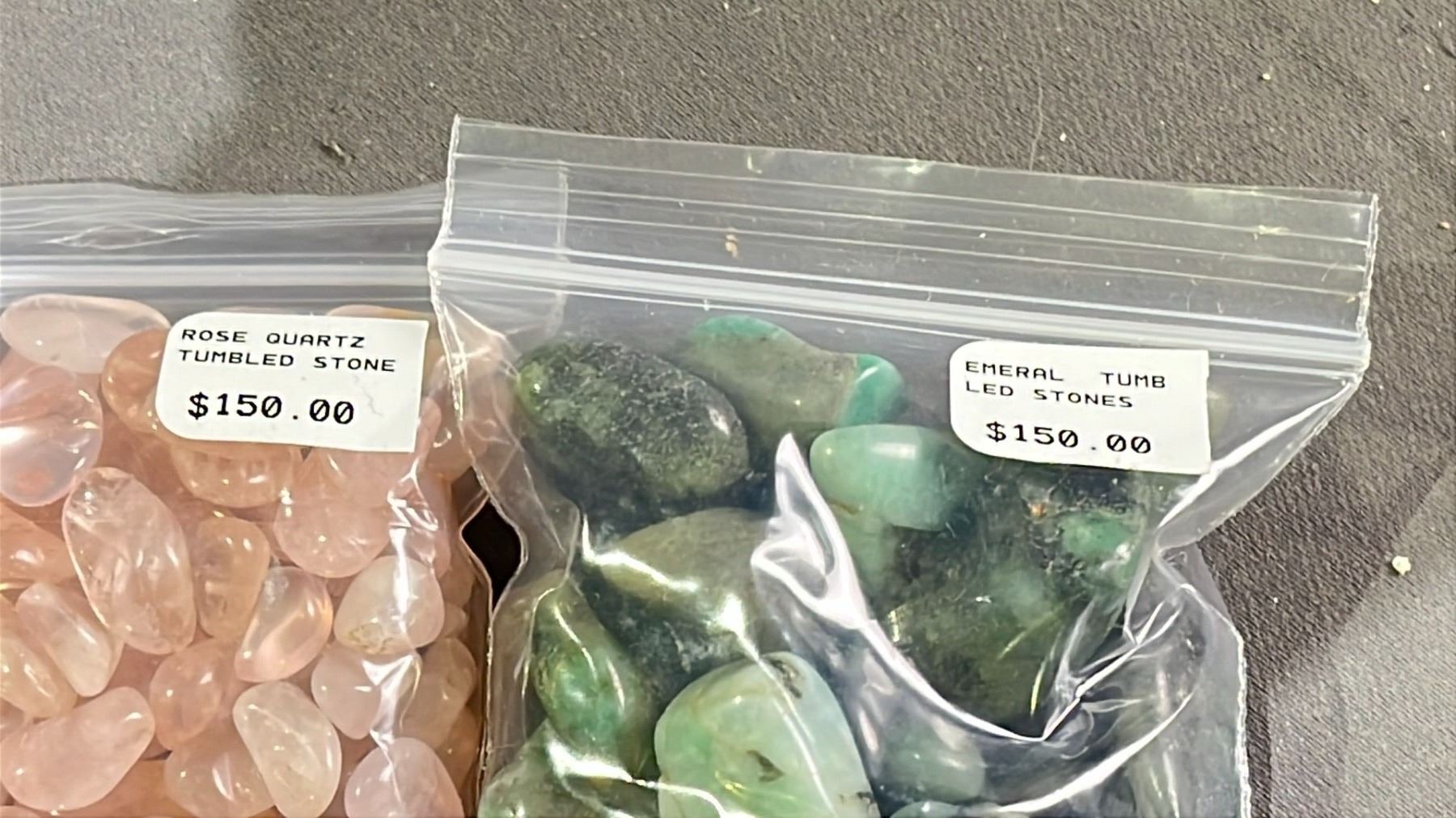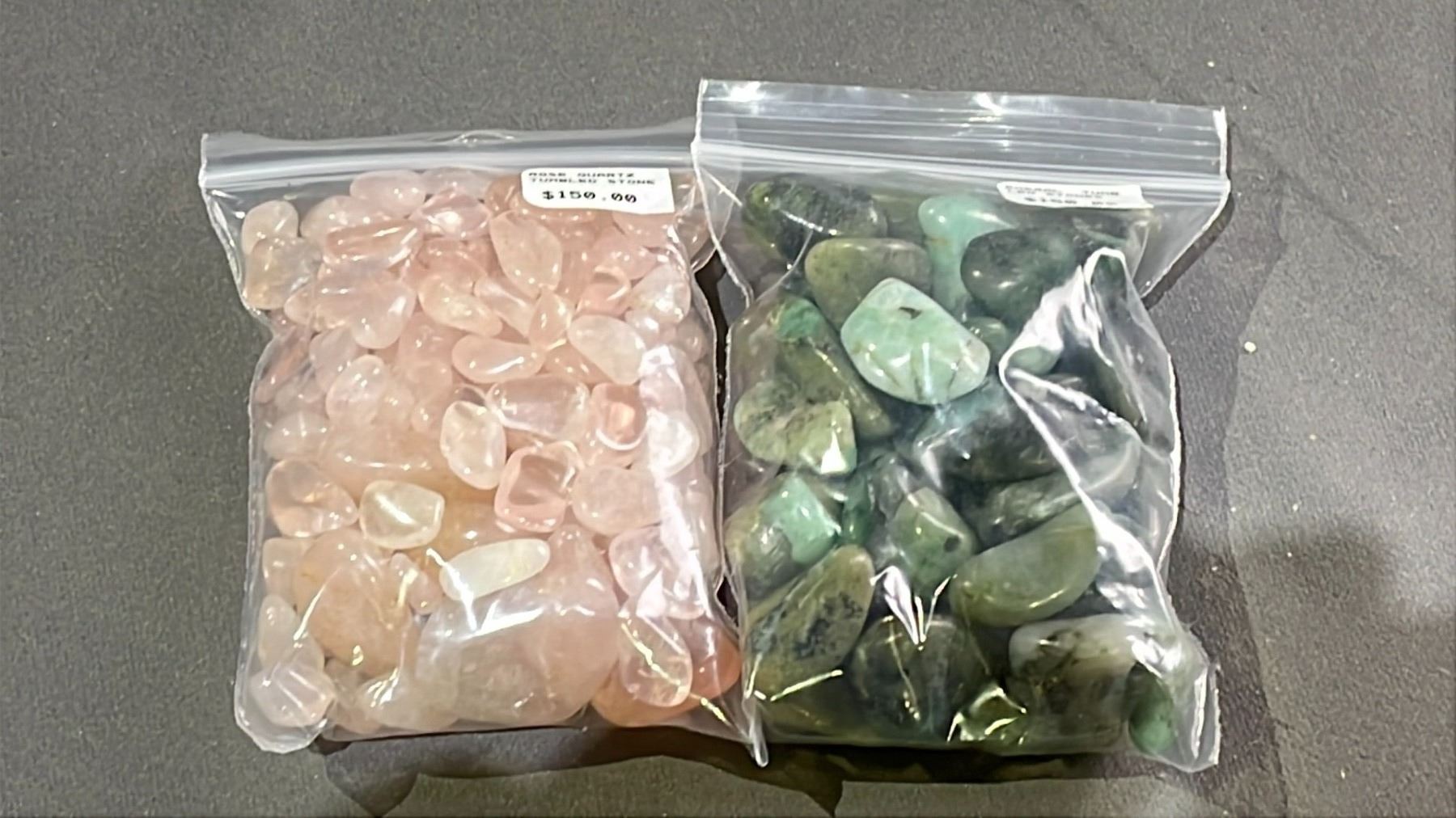 ROSE QUARTZ TUMBLED STONES AND EMERALD TUMBLED STONES RETAIL $150 EACH