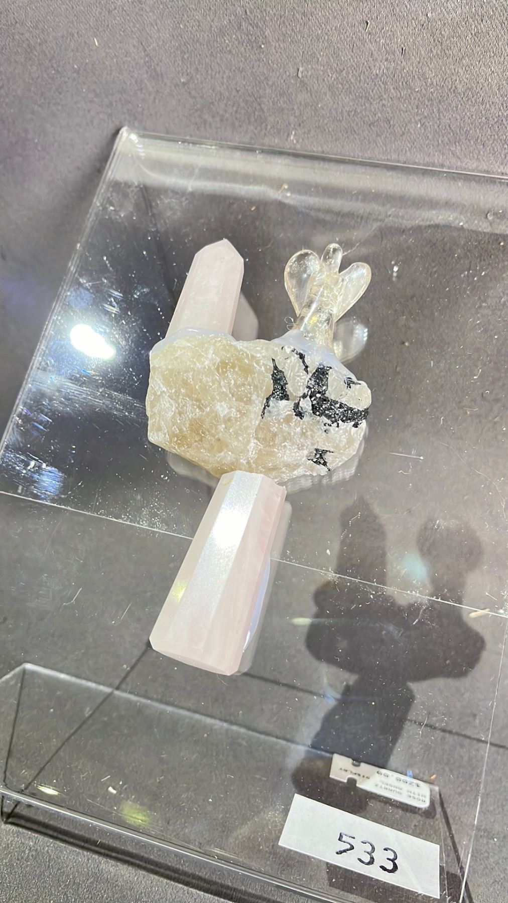 ROSE QUARTZ WITH ANGEL DISPLAY (RETAIL $200)