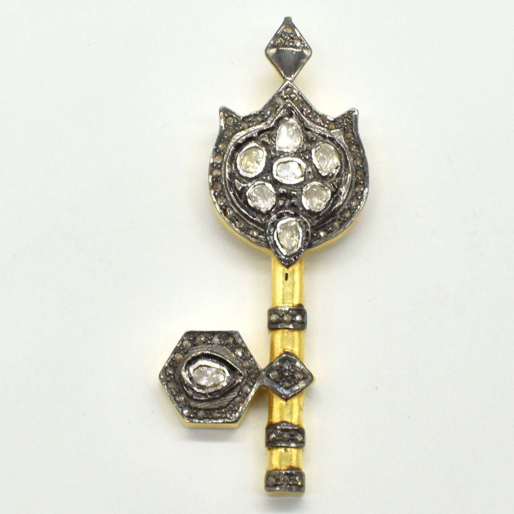 ROSEGOLD PLATED SILVER ROSE CUT DIAMOND(15.95CT) KEY PENDANT