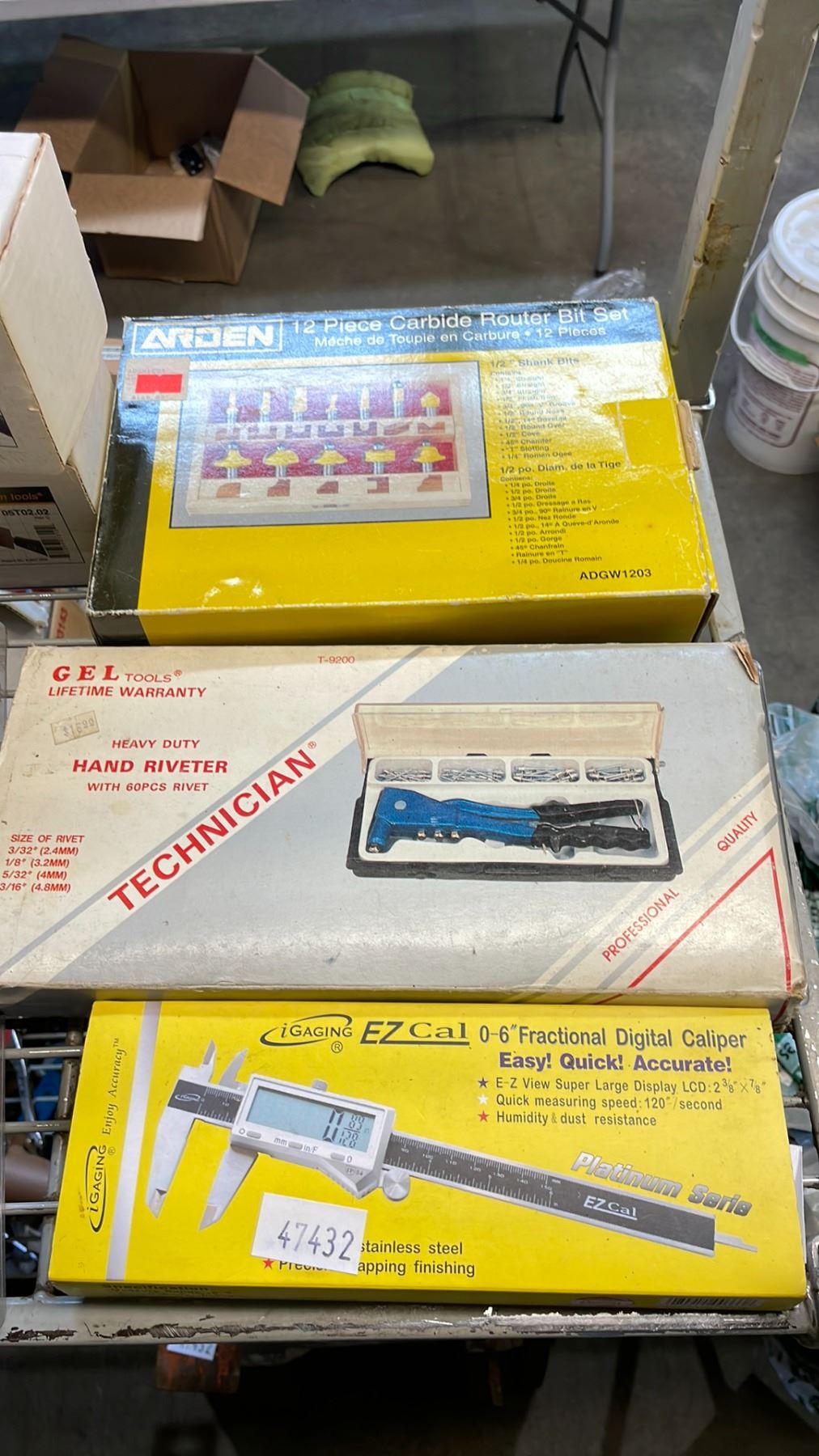 ROTEK STAPLE GUN, MASTERGRIP BIT/SOCKET GEARLESS DRIVER SET, HEX DRIVER DELUXE, MICROMETER, GRINDING JIG & MORE