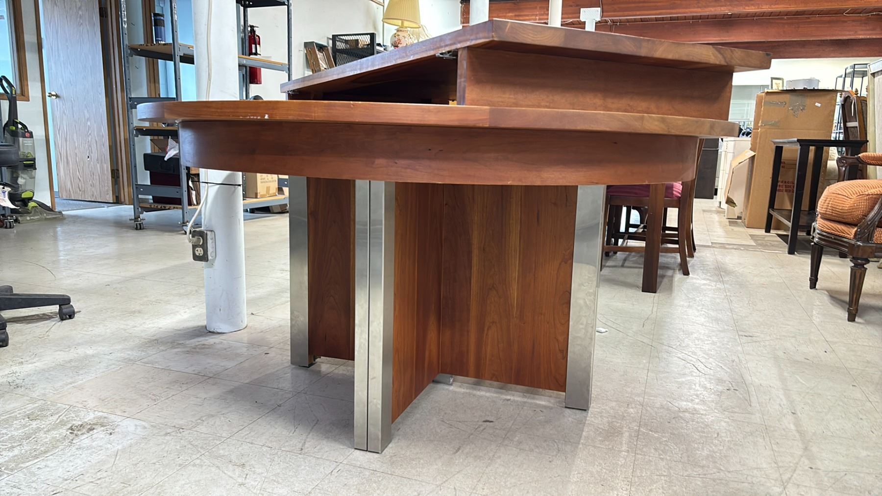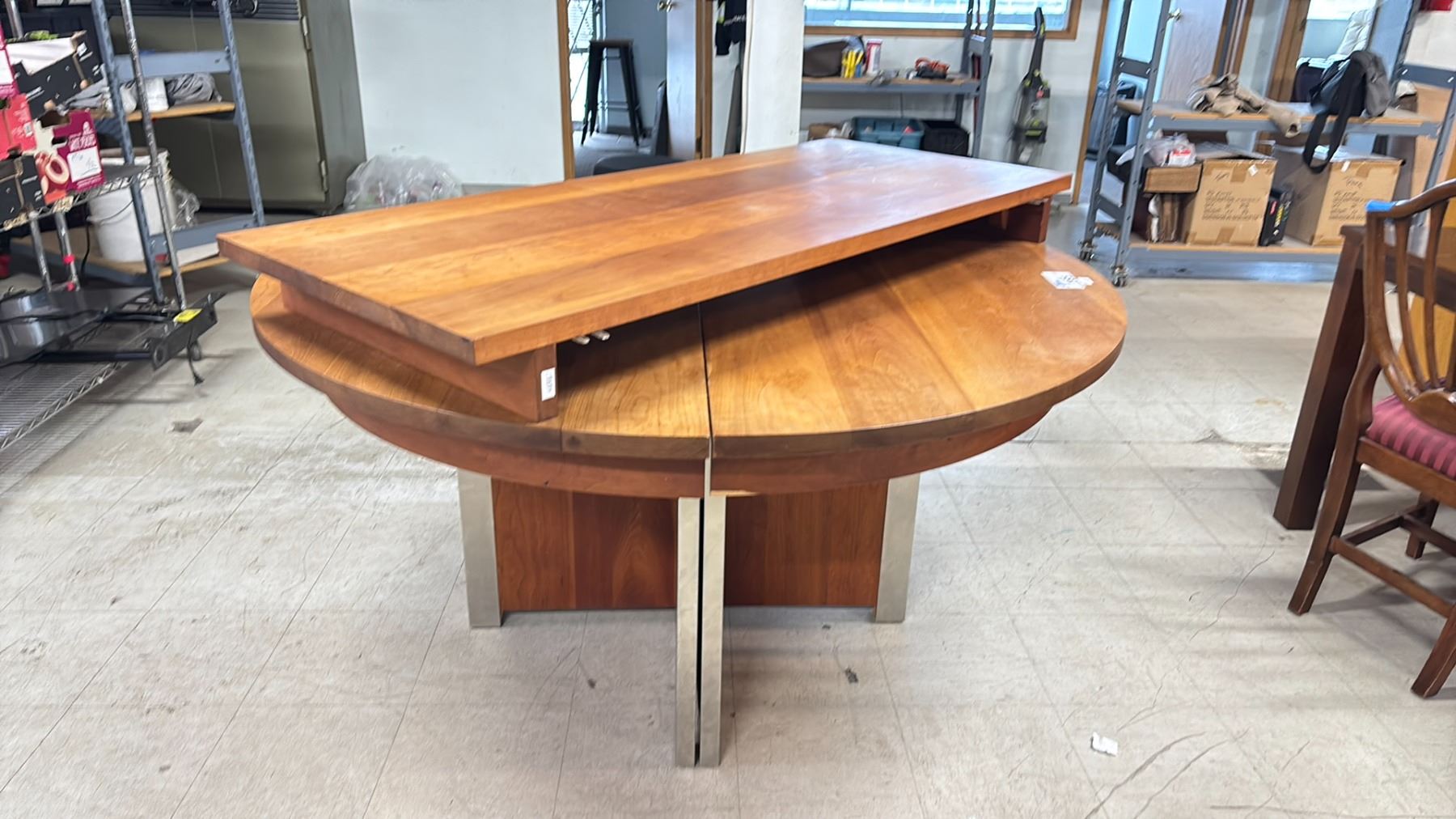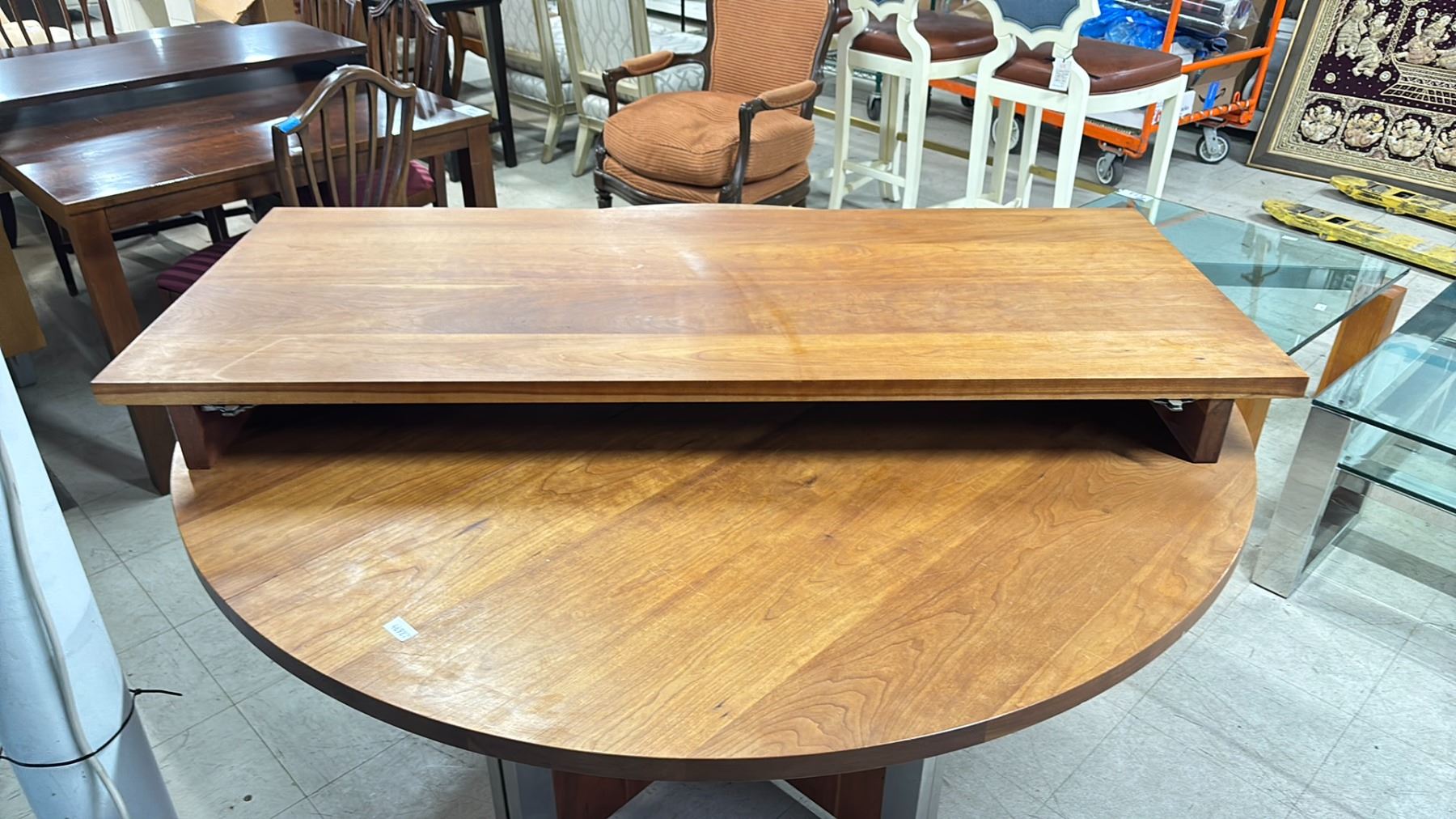 ROUND CHERRYWOOD 5' DIAMETER X 30.5"H DINING TABLE WITH LEAF - LEAF MEASURES 25"D