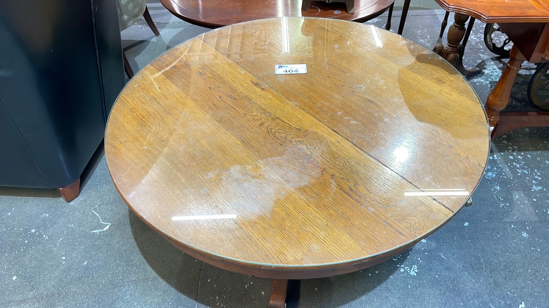 ROUND COFFEE TABLE WITH GLASS TOP - APPROX. 42" DIAMETER X 19.5"H