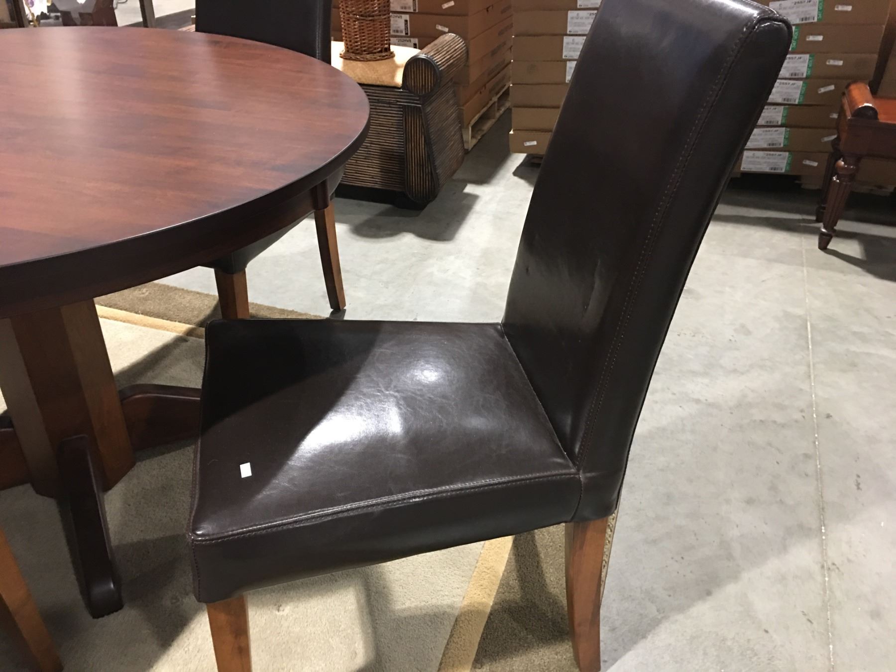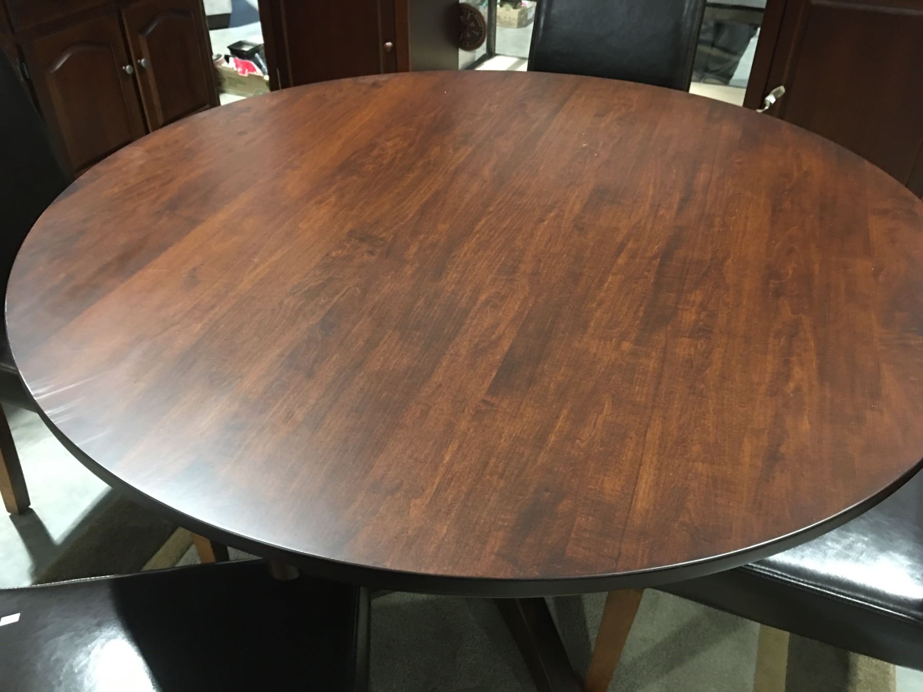 ROUND DINING TABLE WITH PEDESTAL BASE (48") & 4 UPHOLSTERED CHAIRS (MILD SCRATCH NOTED ON TABLE TOP