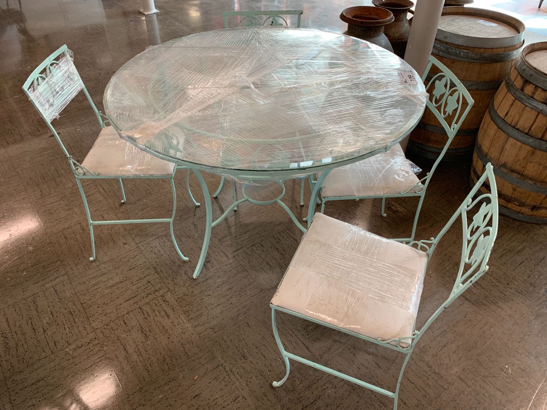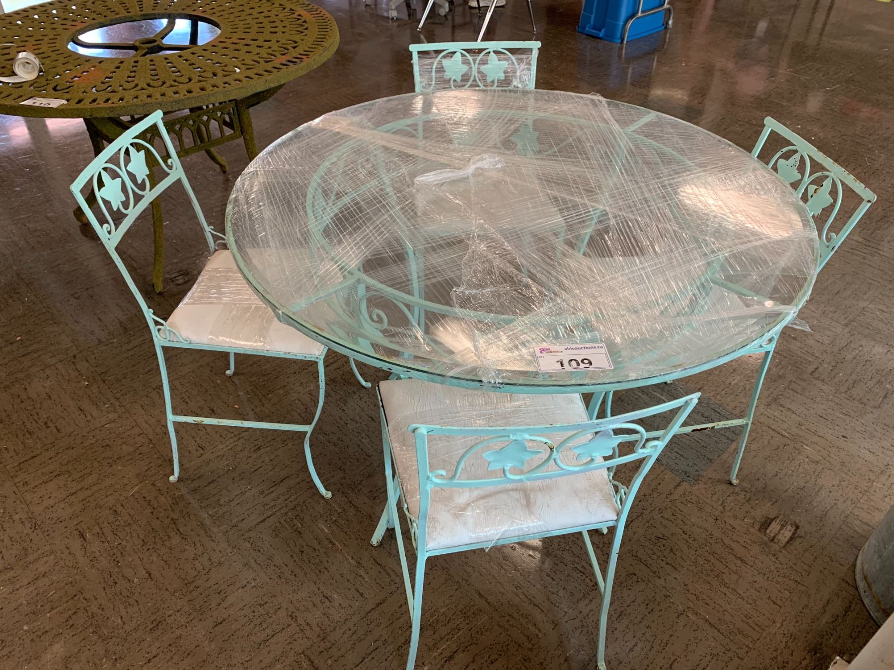 ROUND METAL GLASS TOP PATIO TABLE 30"X42" & 4 CHAIRS