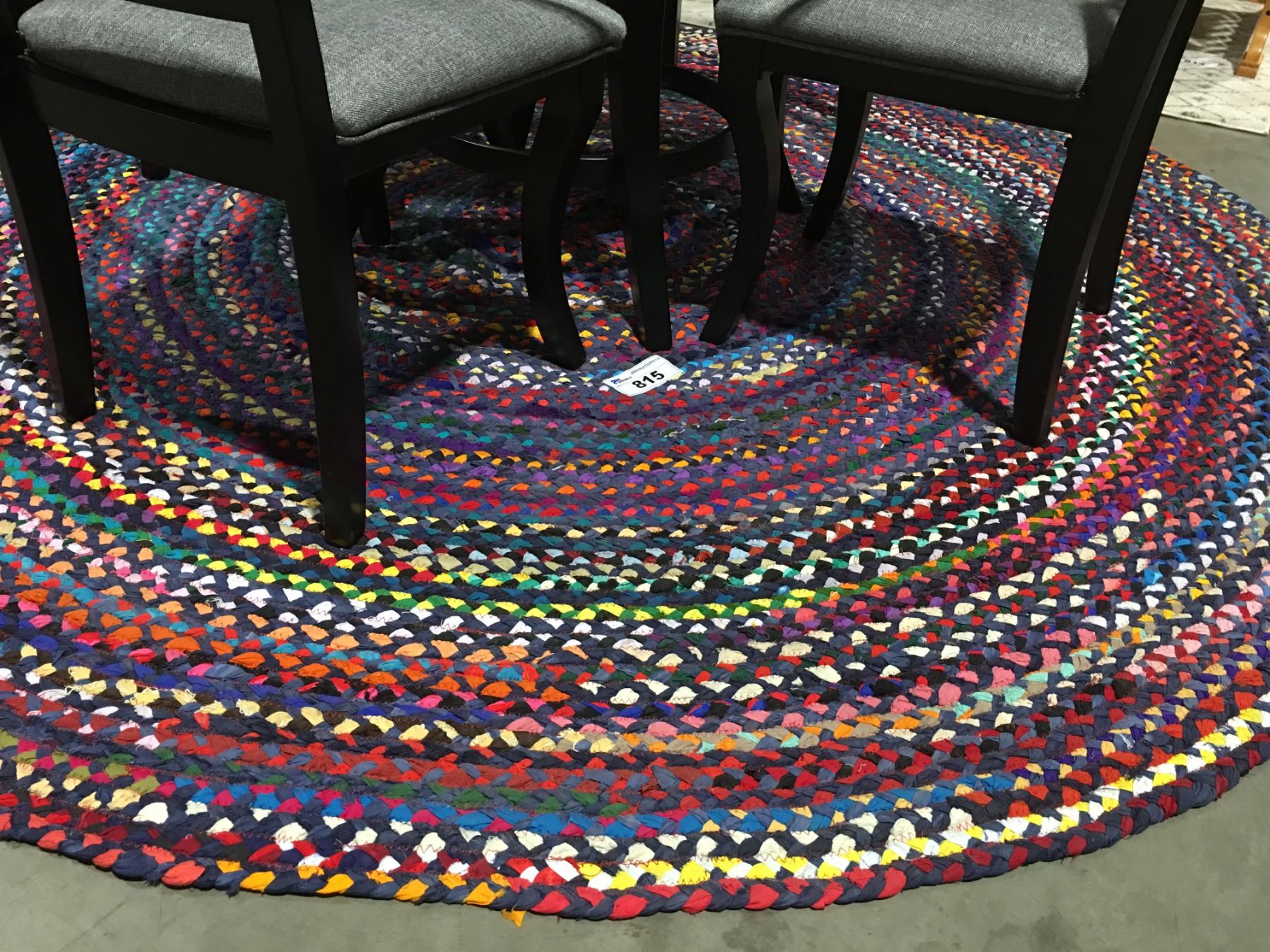 ROUND MULTI COLORED AREA RUG APROX 8' DIAMETER