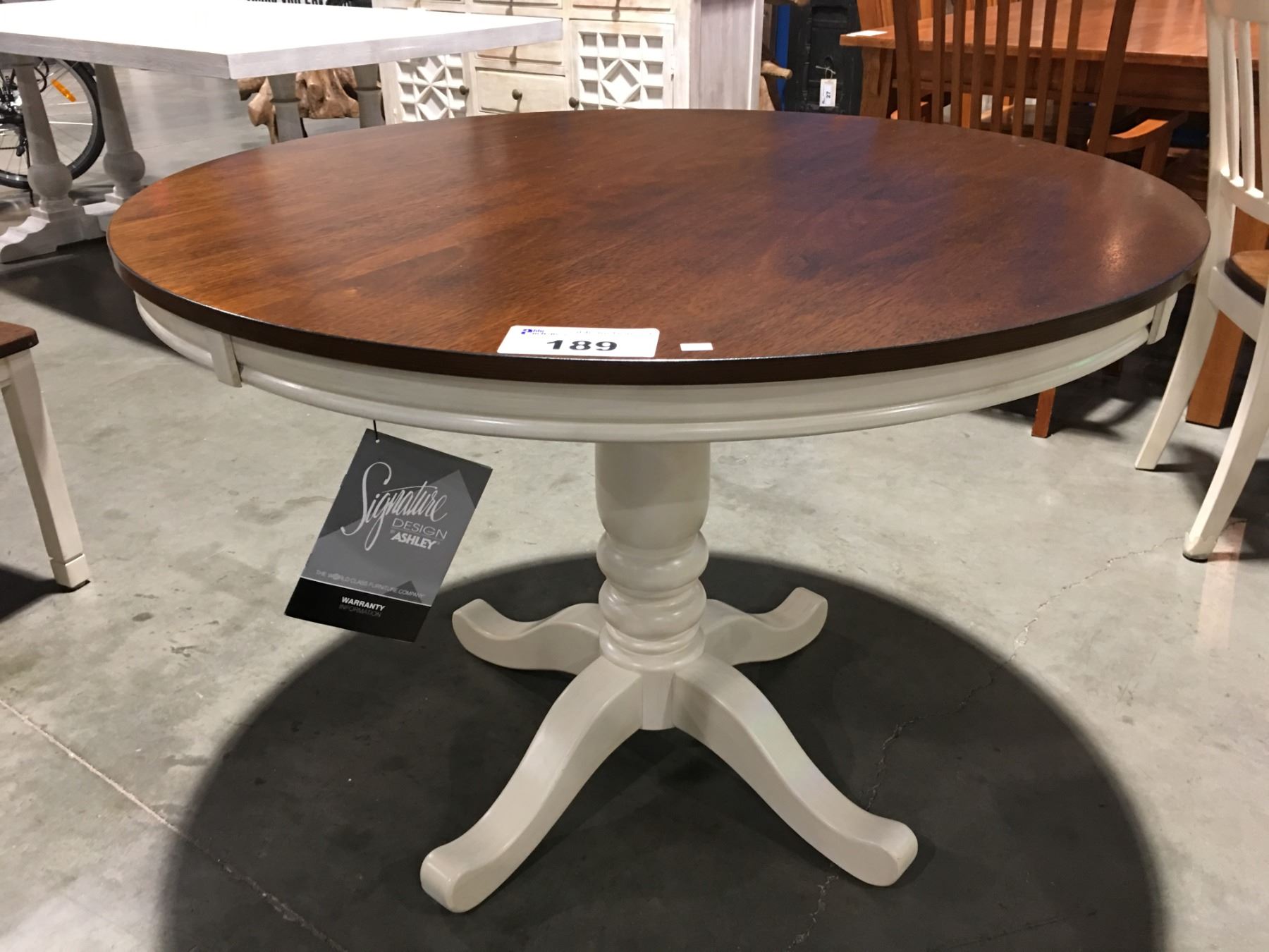 ROUND SINGLE PEDESTAL DINING TABLE OF-WHITE & NATURAL