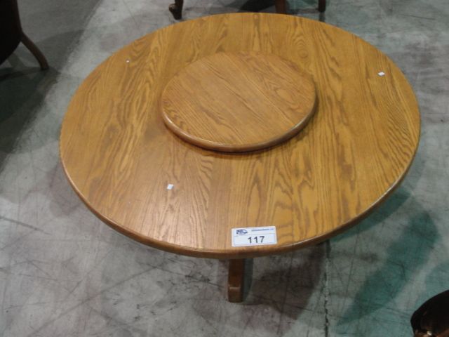 ROUND SINGLE PEDESTAL SOLID OAK COFFEE TABLE WITH MATCHING LAZY SUSAN