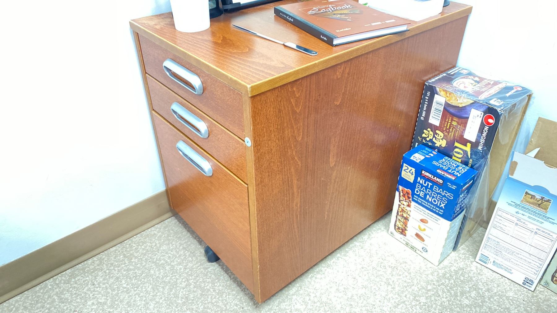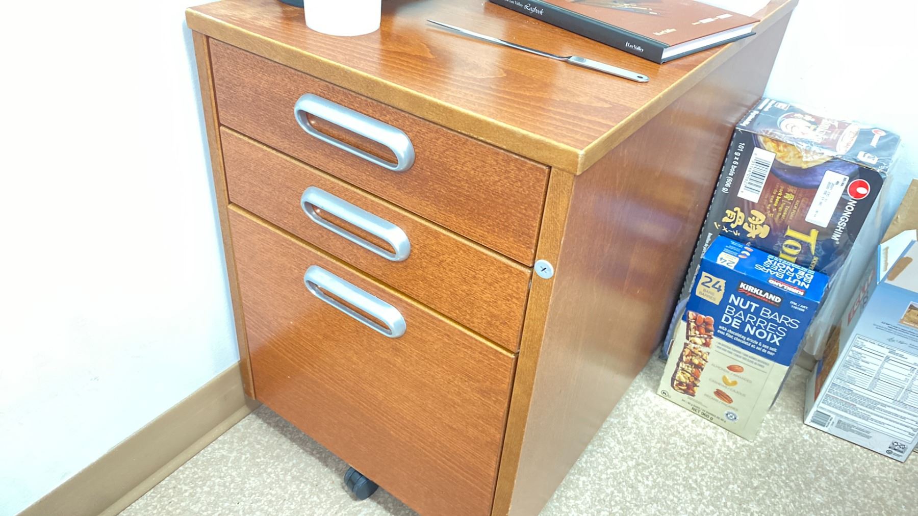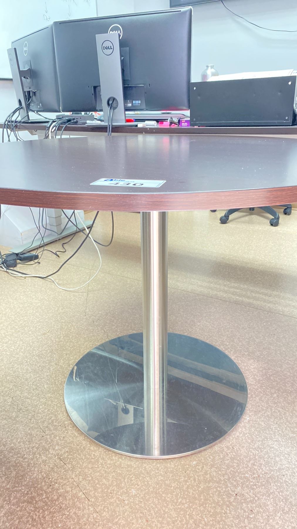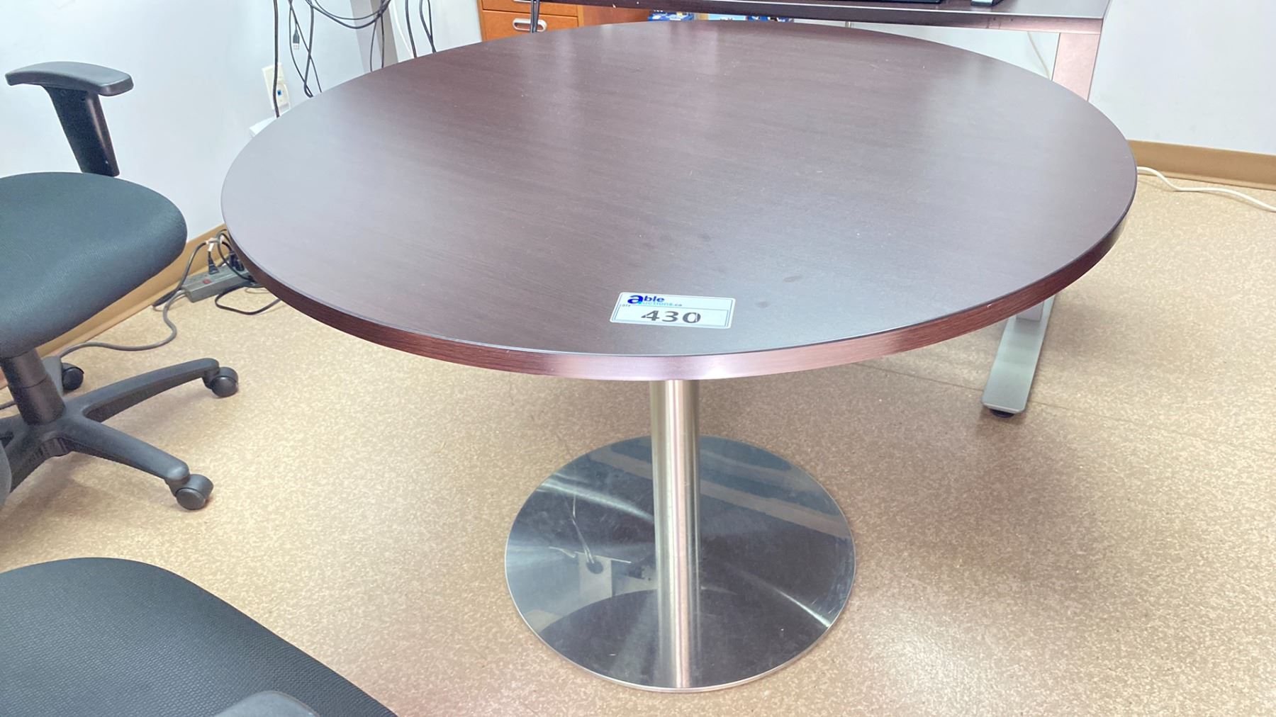 ROUND TABLE APPROX 3' CIRCUMFERENCE AND 3 DRAWER MOBILE FILE CABINET