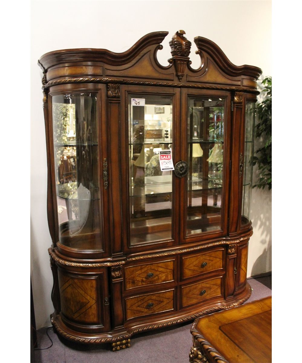 ROUNDED GLASS HEAVILY CARVED BUFFET & HUTCH