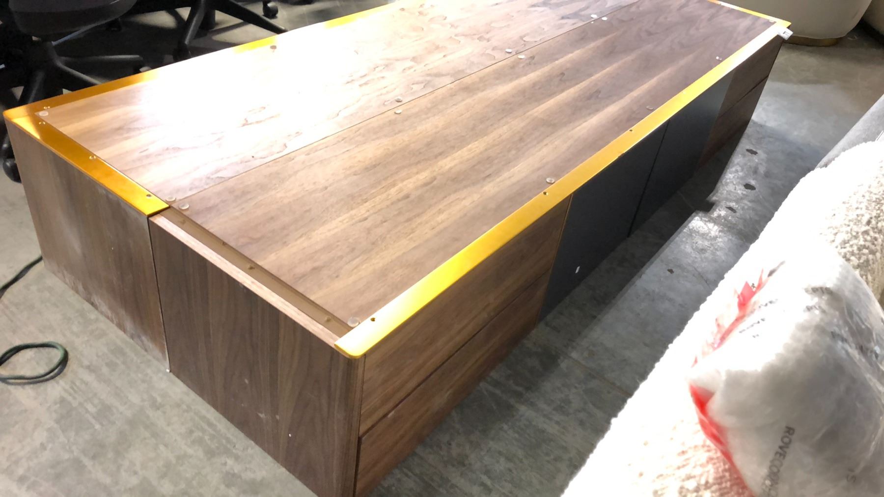 ROVE CONCEPTS AUGUSTUS WALNUT 87"W TV STAND (MISSING LEGS)