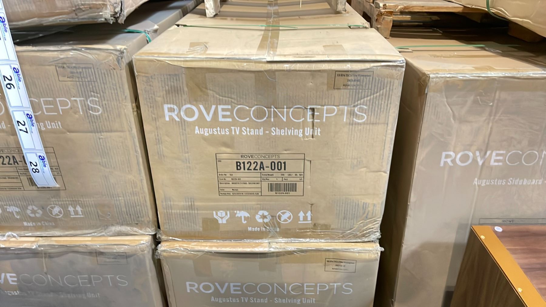 ROVE CONCEPTS DESIGNER AGUSTUS WALNUT TELEVISION STAND SHELVING UNIT *IN BOX, INCOMPLETE
