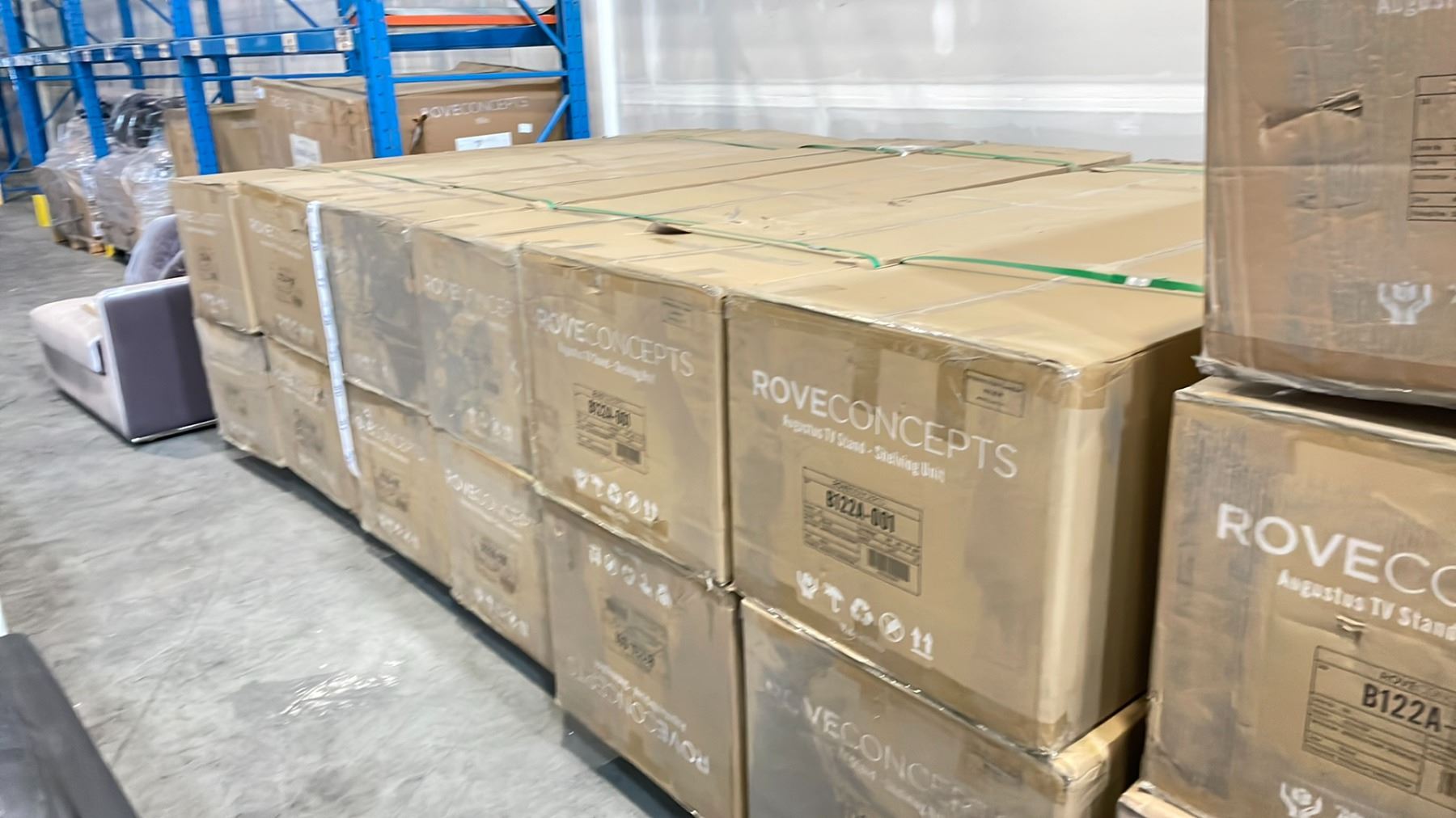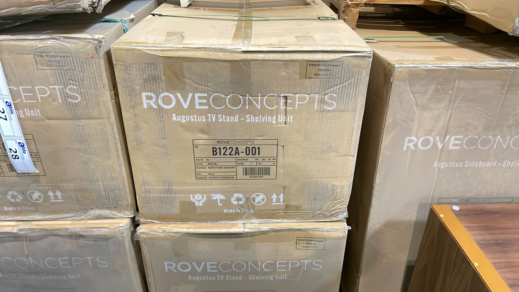 ROVE CONCEPTS DESIGNER AGUSTUS WALNUT TELEVISION STAND SHELVING UNIT *IN BOX, INCOMPLETE PART 1 OF 3 ONLY*