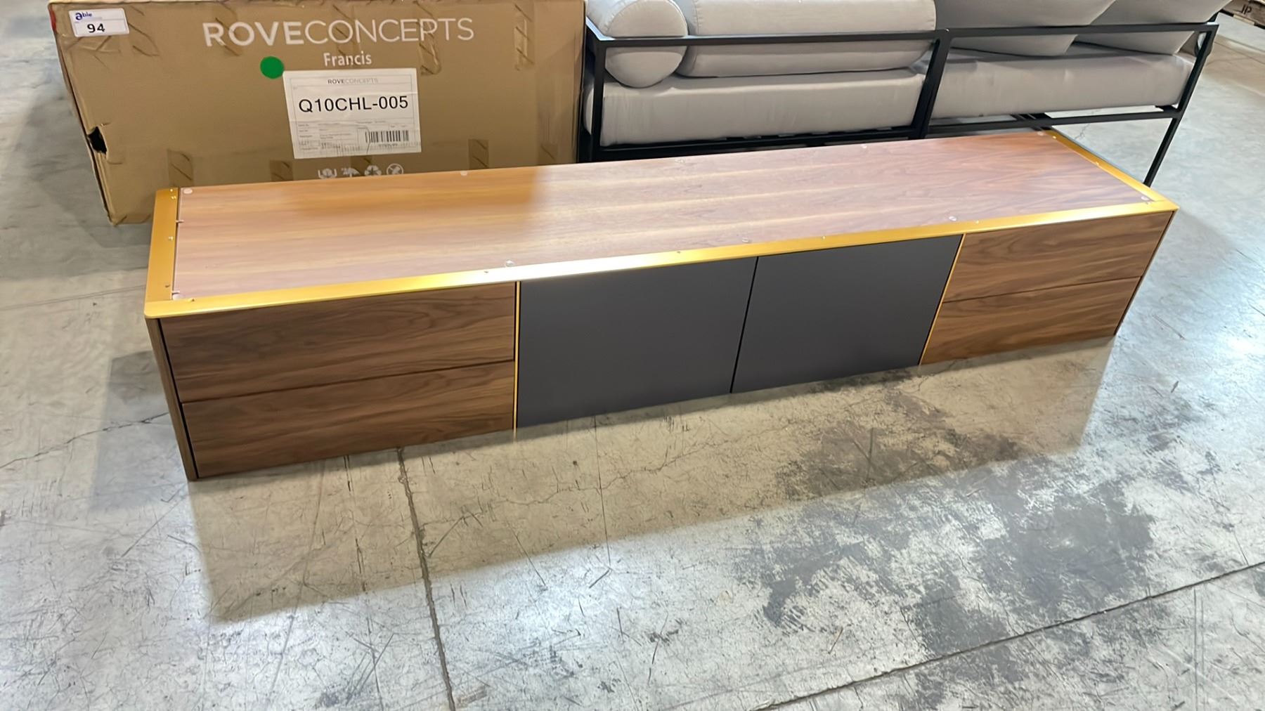 ROVE CONCEPTS DESIGNER AGUSTUS WALNUT TELEVISION STAND SHELVING UNIT *IN BOX, INCOMPLETE PART 1 OF 3 ONLY*