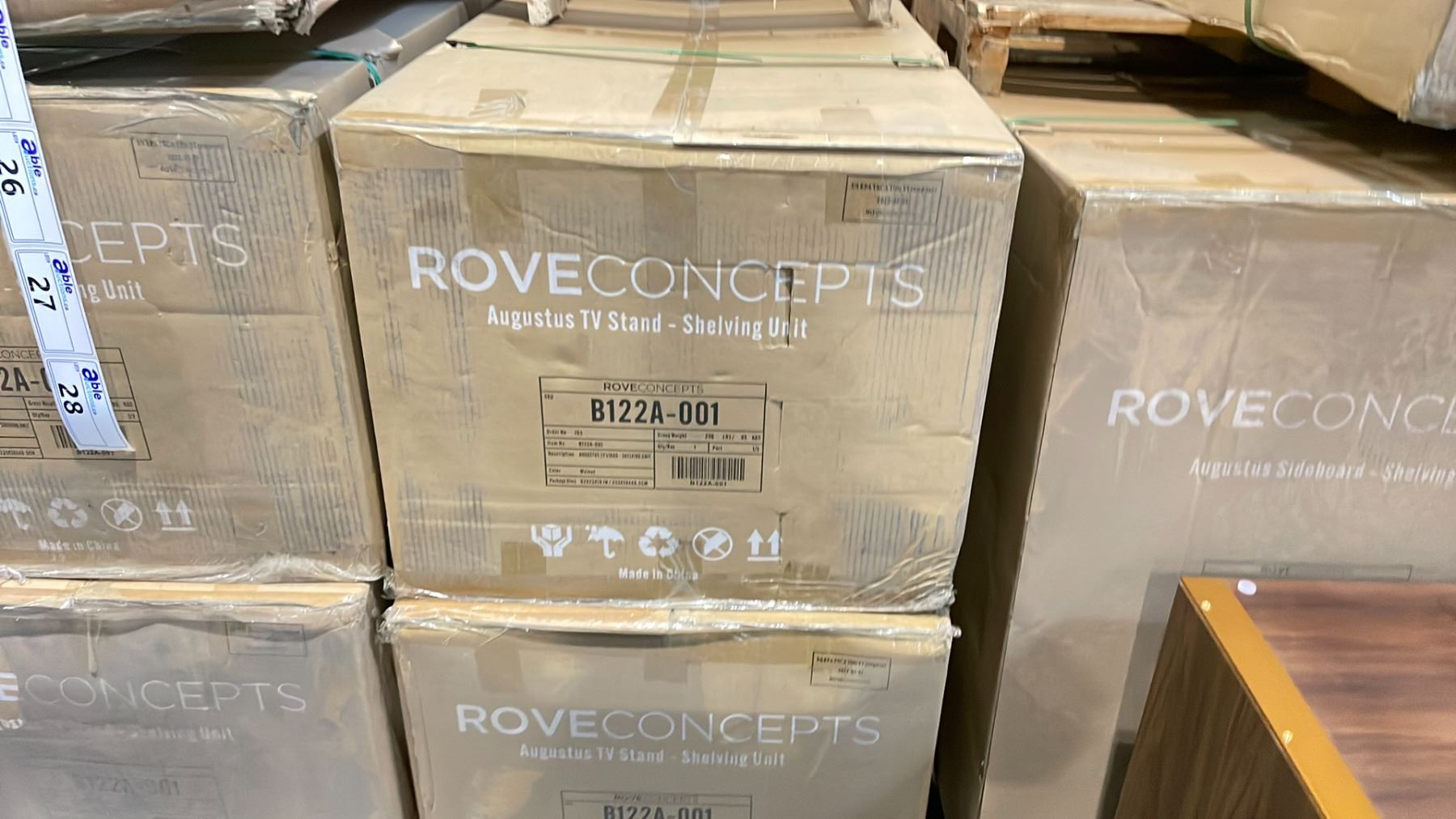 ROVE CONCEPTS DESIGNER AGUSTUS WALNUT TELEVISION STAND SHELVING UNIT *IN BOX, INCOMPLETE