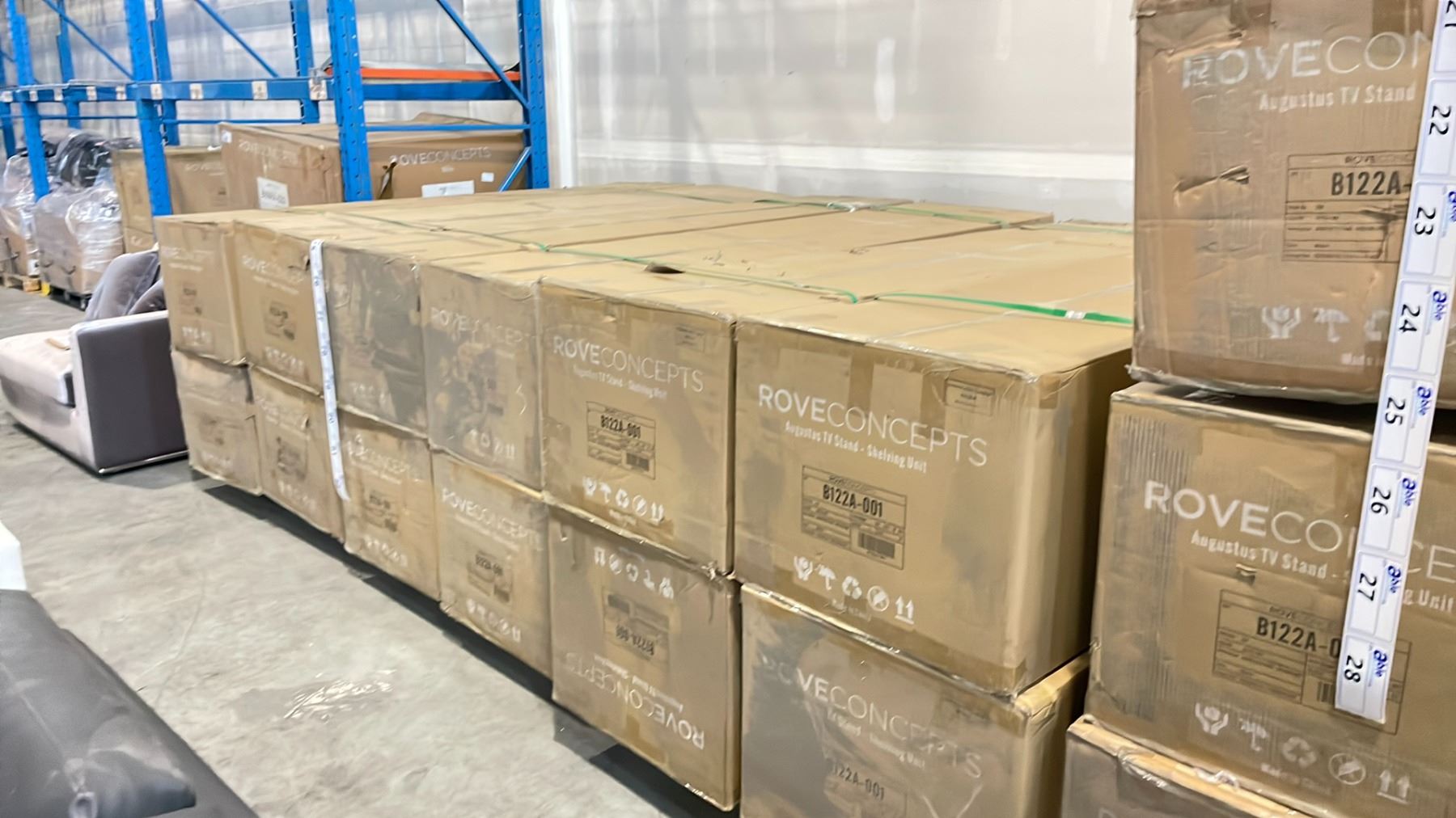 ROVE CONCEPTS DESIGNER AGUSTUS WALNUT TELEVISION STAND SHELVING UNIT *IN BOX, INCOMPLETE PART 1 OF 3 ONLY*