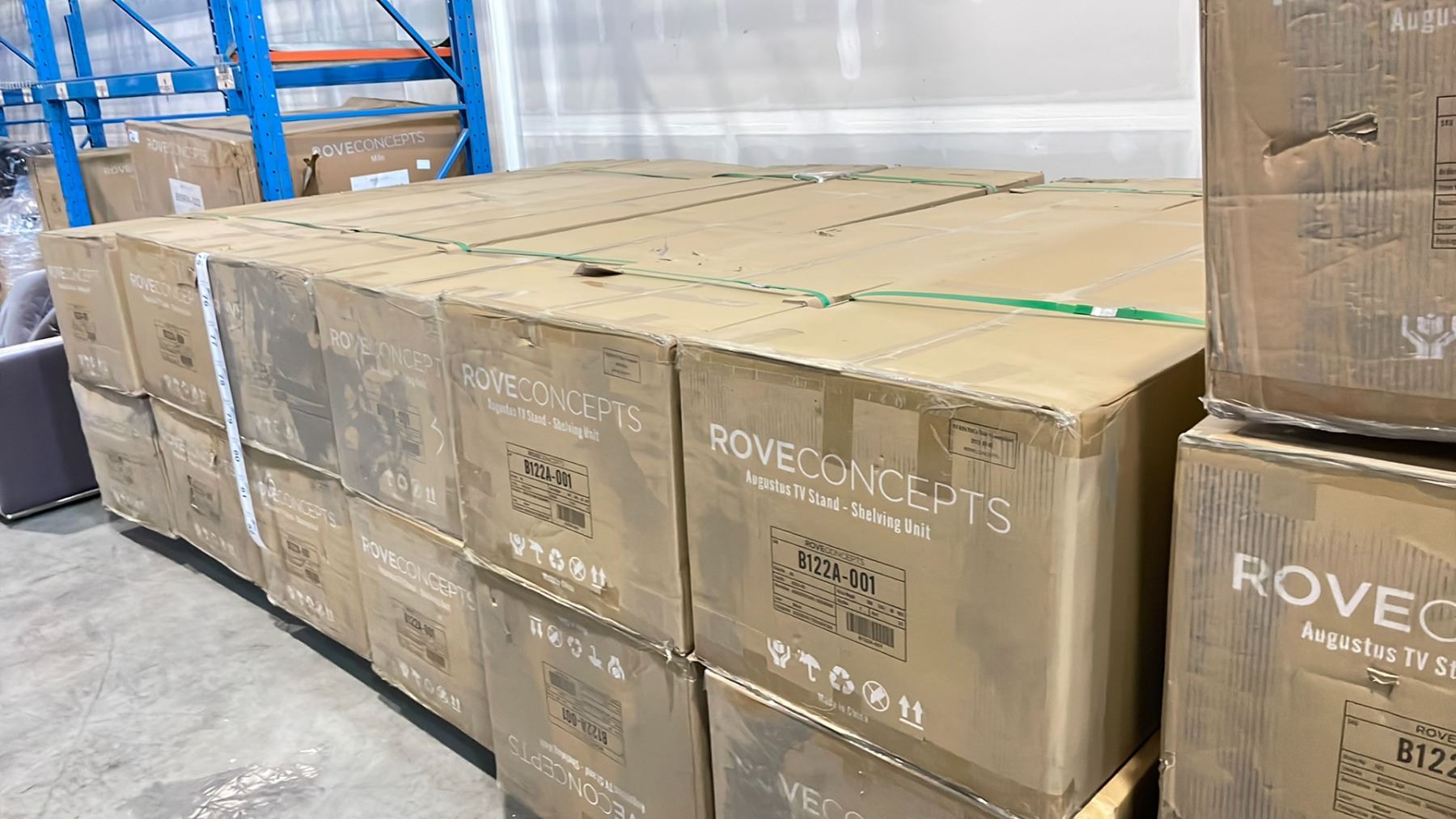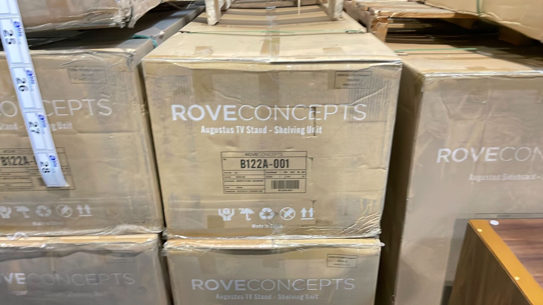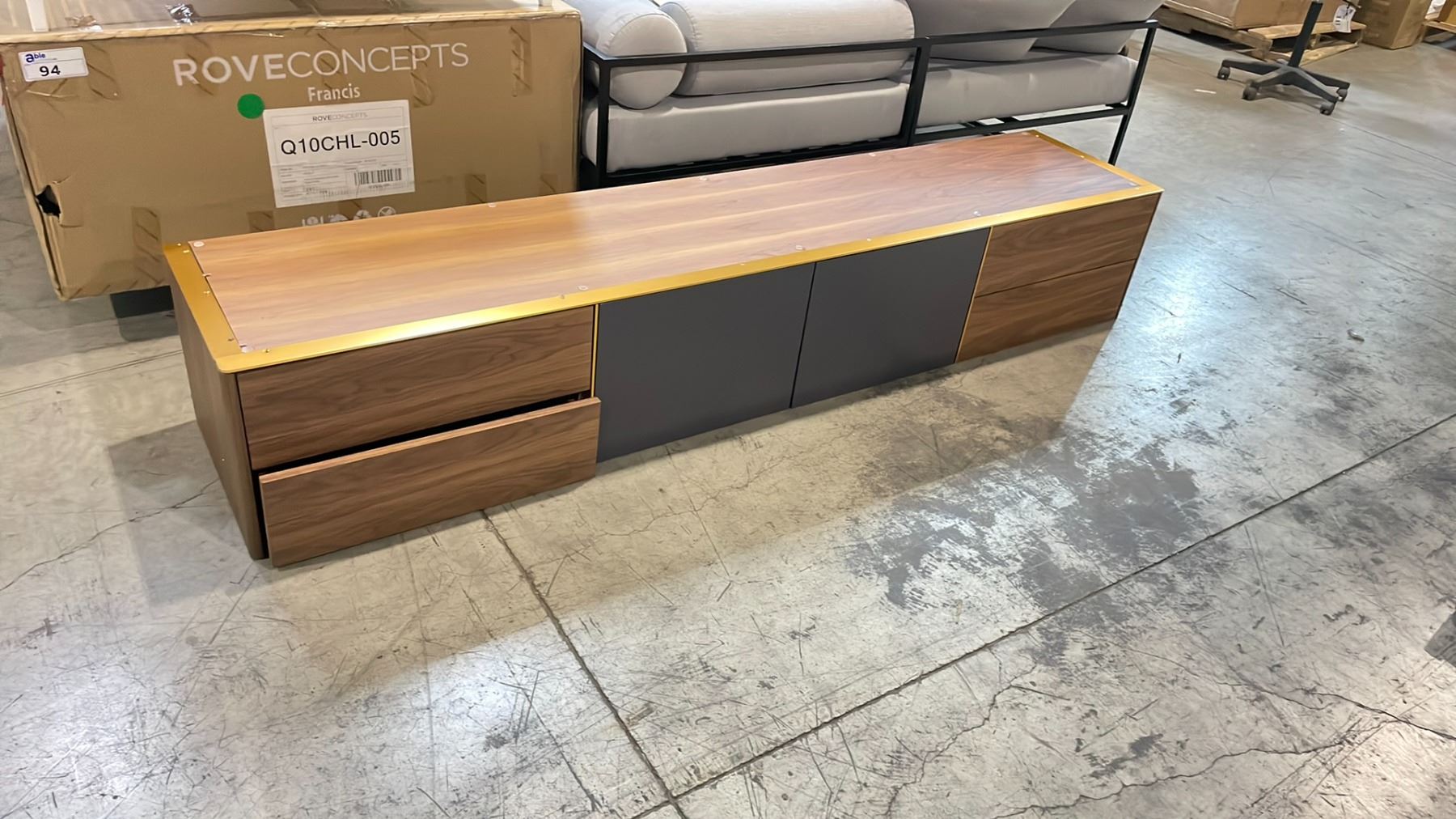 ROVE CONCEPTS DESIGNER AGUSTUS WALNUT TELEVISION STAND SHELVING UNIT *IN BOX, INCOMPLETE PART 1 OF 3 ONLY*