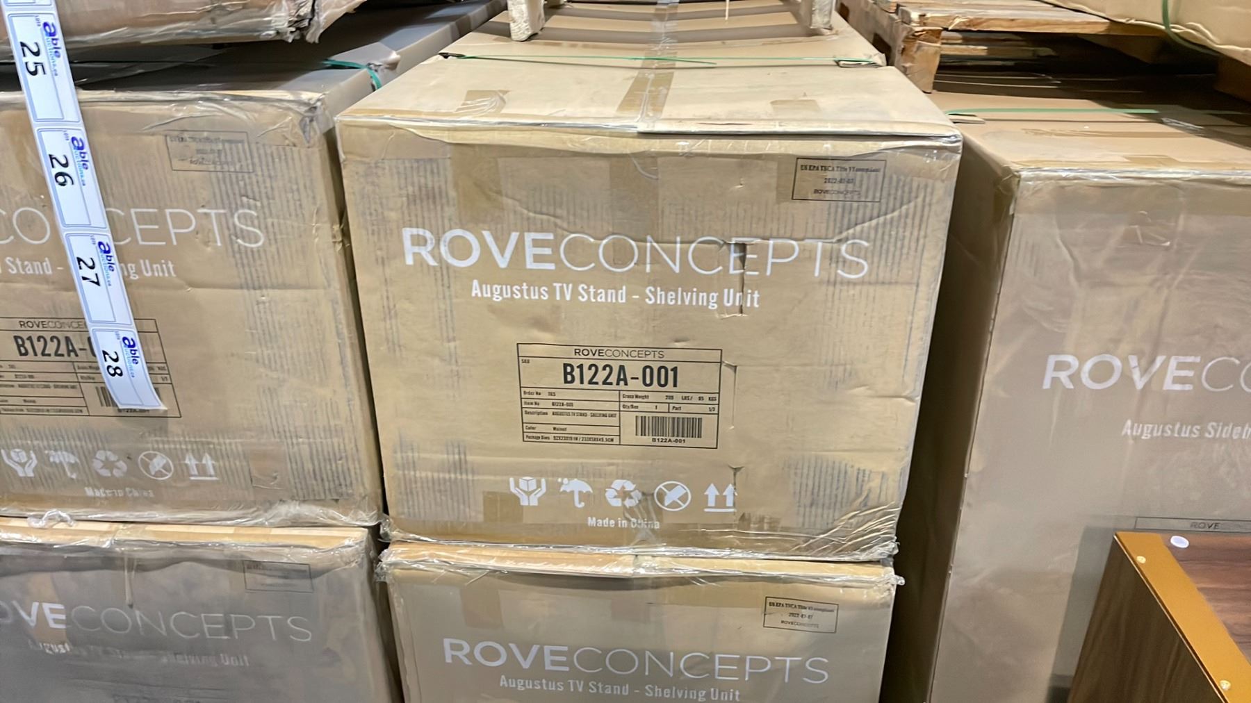 ROVE CONCEPTS DESIGNER AGUSTUS WALNUT TELEVISION STAND SHELVING UNIT *IN BOX, INCOMPLETE PART 1 OF 3 ONLY*