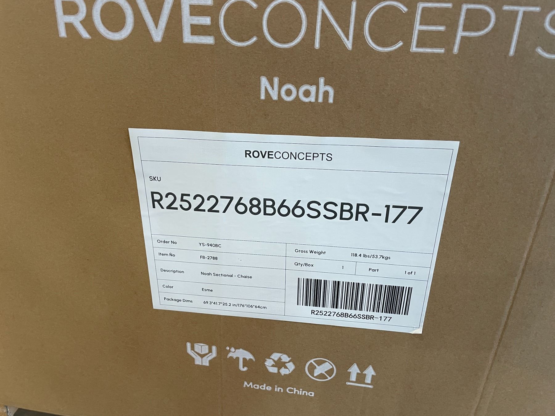 ROVE CONCEPTS DESIGNER BERLIN NOAH RIGHT ARM CHAISE SECTIONAL SECTION *IN BOX*
