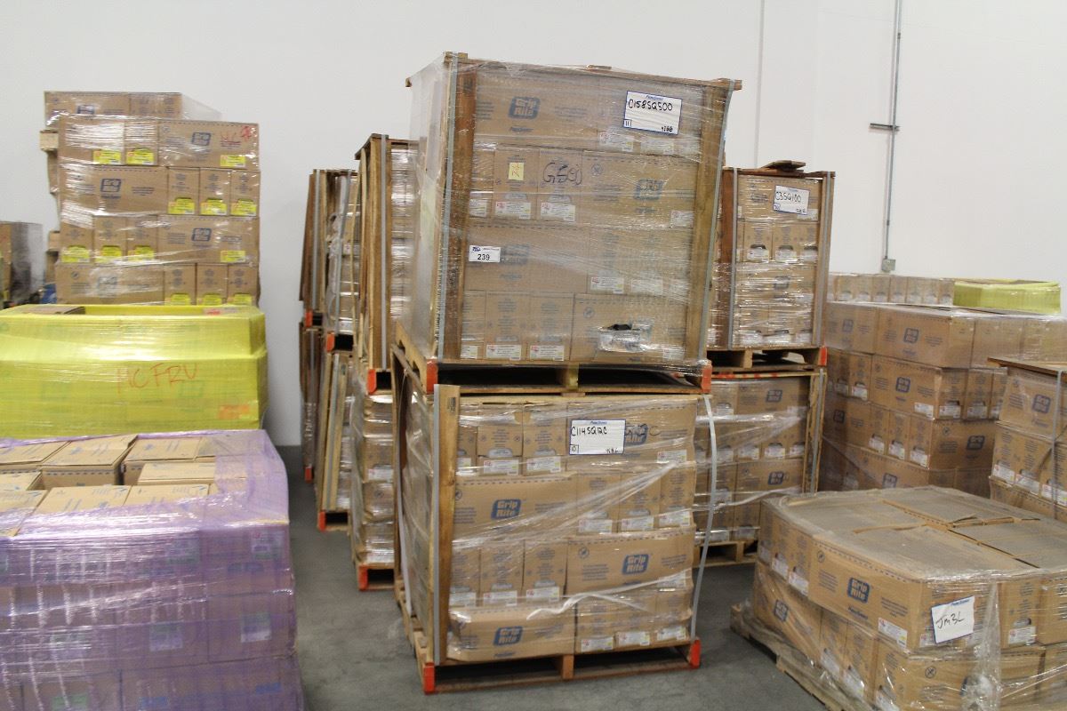 ROW OF 8 PALLETS OF ASSORTED SIZE EXTERIOR SCREWS (GREEN)
