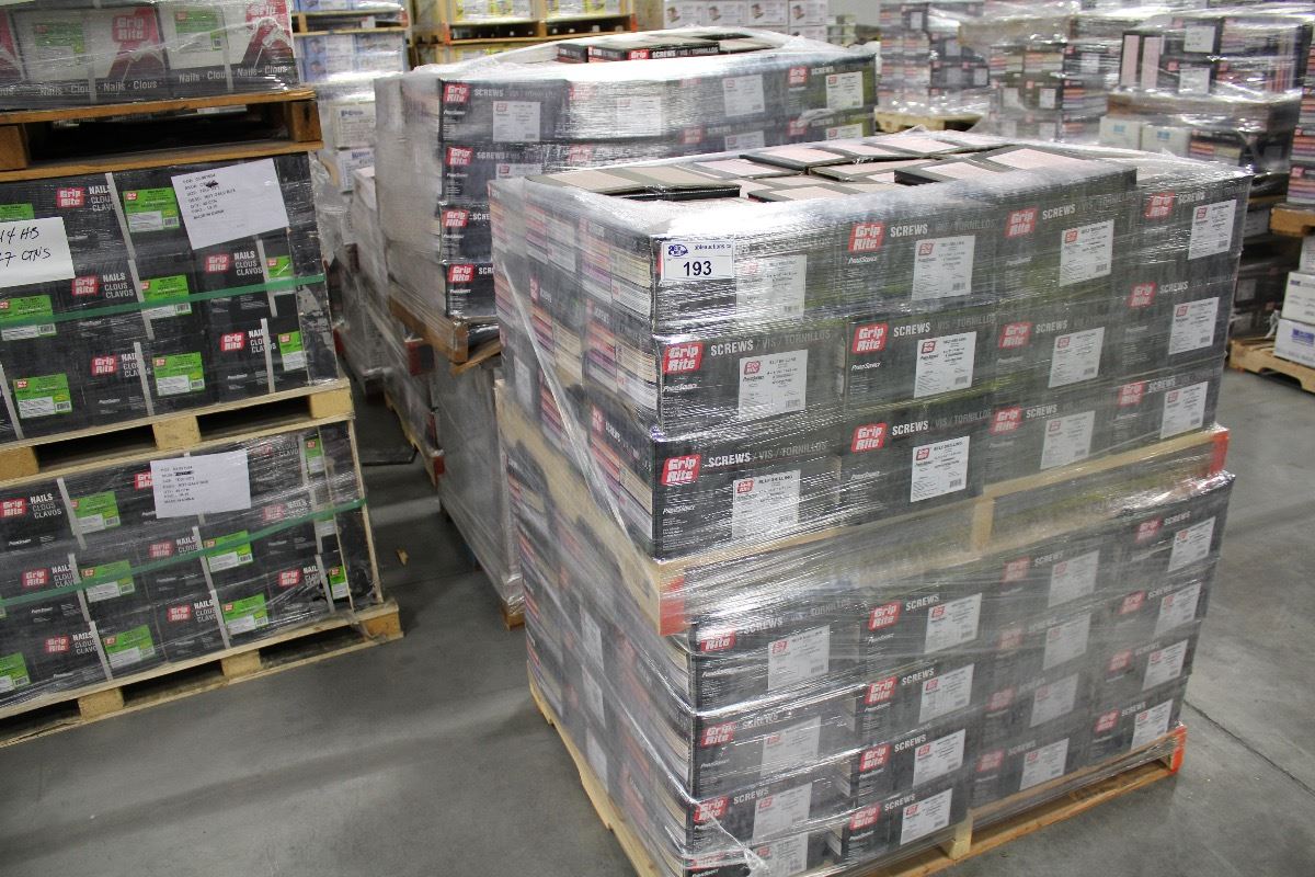 ROW OF APPROX. 10 PALLETS OF ASSORTED SELF DRILLING METAL SCREWS