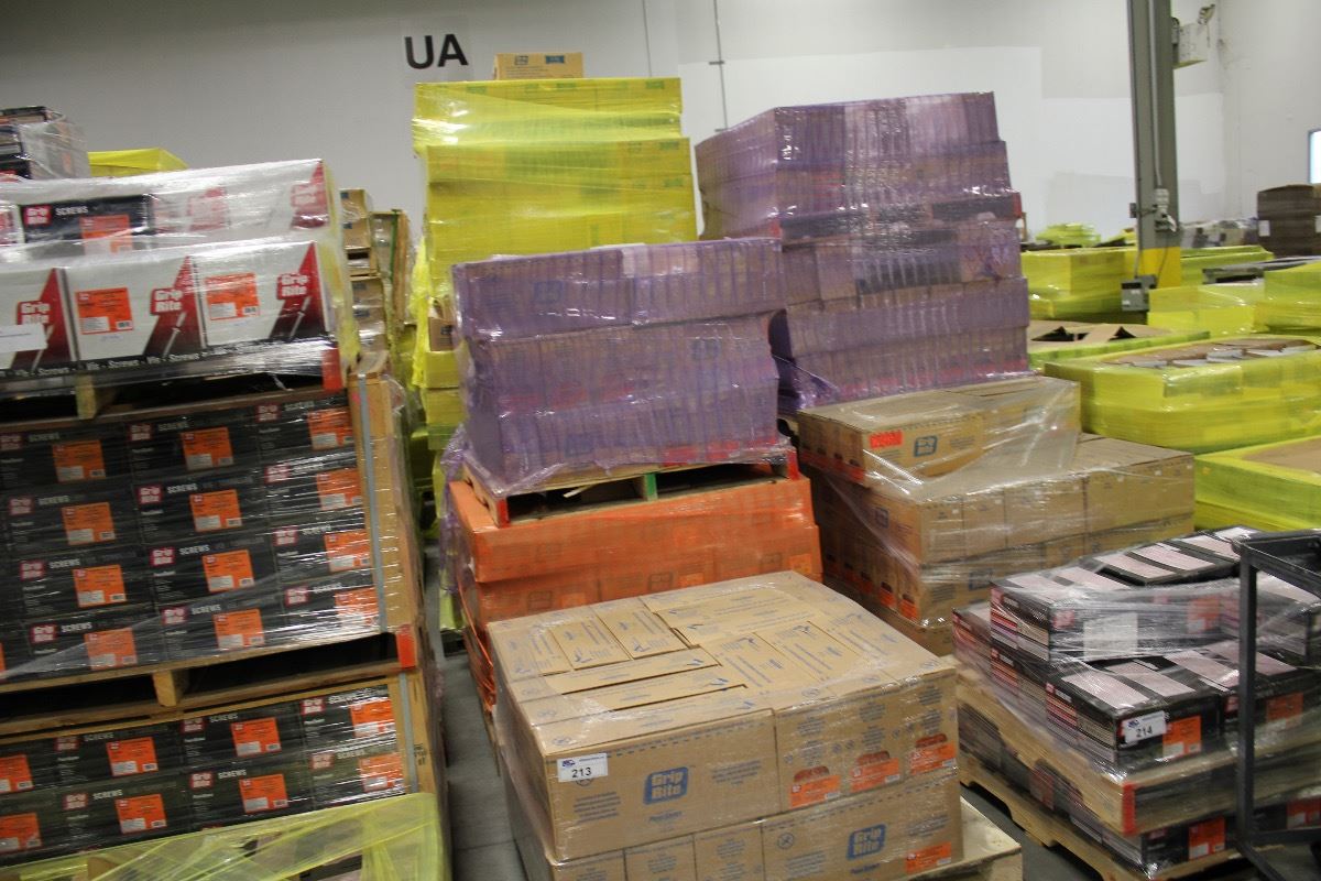 ROW OF APPROX. 10 PALLETS OF ASSORTED SIZE CONSTRUCTION SCREWS