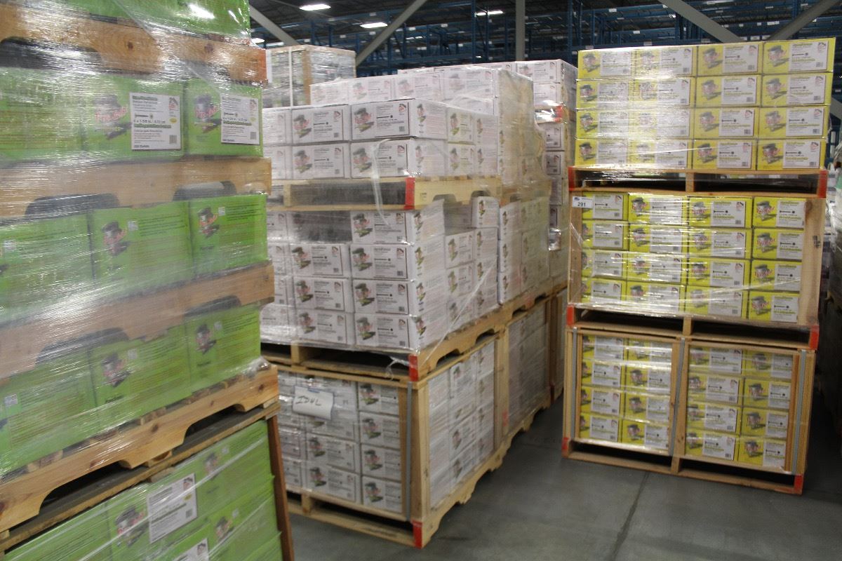 ROW OF APPROX. 10 PALLETS OF ASSORTED SIZE FINE THREAD DRYWALL SCREWS