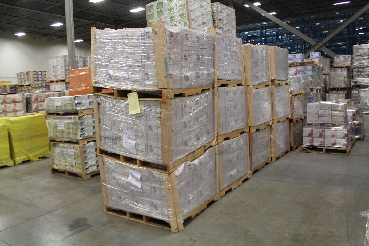 ROW OF APPROX. 12 PALLETS OF 1 1/4 X 2 1/2 DRYWALL NAILS