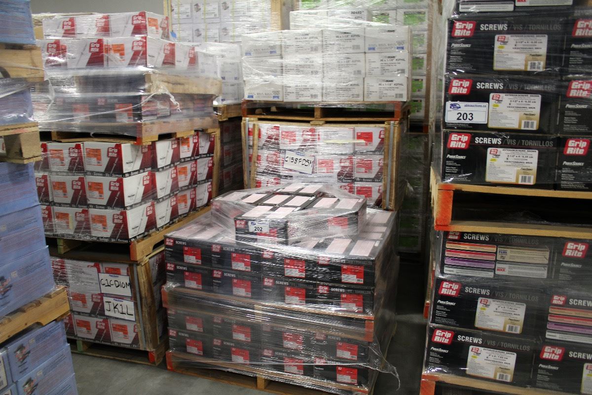 ROW OF APPROX. 12 PALLETS OF ASSORTED DRYWALL SCREWS