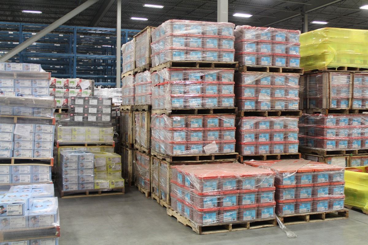 ROW OF APPROX. 13 PALLETS OF ASSORTED SIZE PLASTIC CAP NAILS