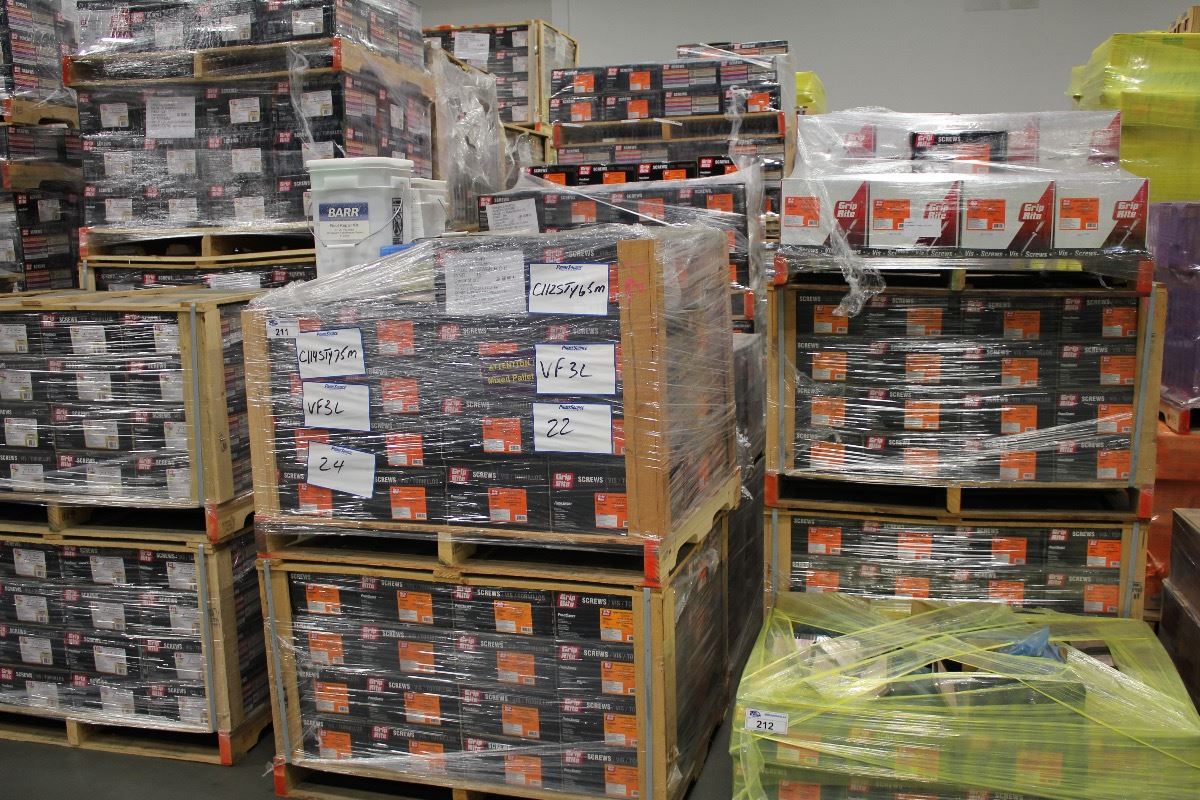 ROW OF APPROX. 17 PALLETS OF ASSORTED CONCRETE SCREWS