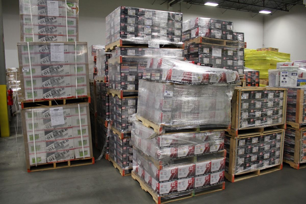 ROW OF APPROX. 17 PALLETS OF ASSORTED SIZE EXTERIOR SCREWS (GREEN)