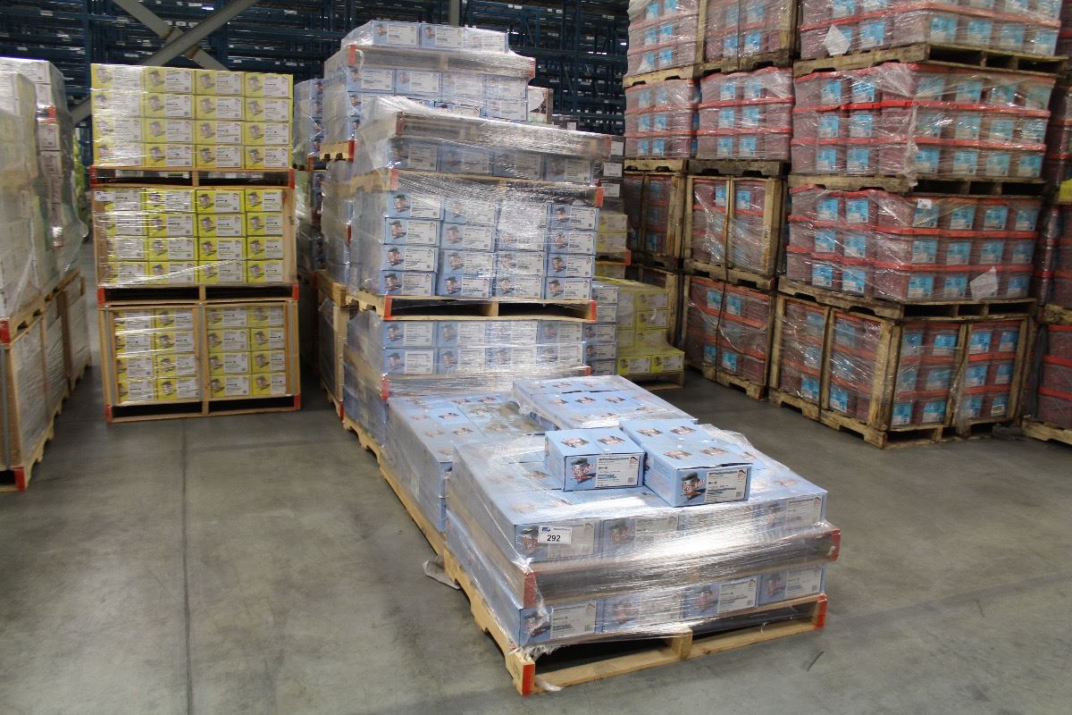 ROW OF APPROX. 17 PALLETS OF ASSORTED SIZE HEX WASHER HEAD SCREWS