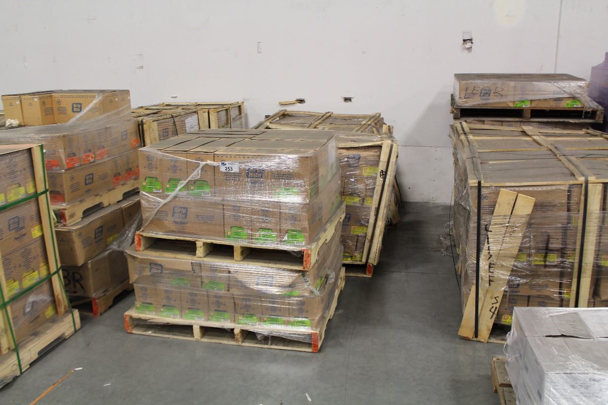 ROW OF APPROX. 4 PALLETS OF ASSORTED FENCE STAPLES & CASING NAILS