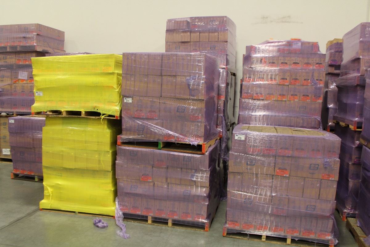 ROW OF APPROX. 7 PALLETS OF ASSORTED SIZE FLOORING SCREWS