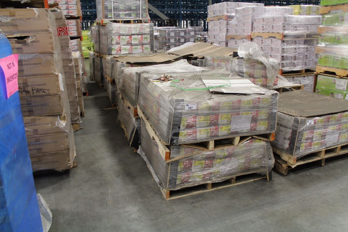 ROW OF APPROX. 8 PALLETS OF 12'' SCREW SHANK SPIKE NAILS