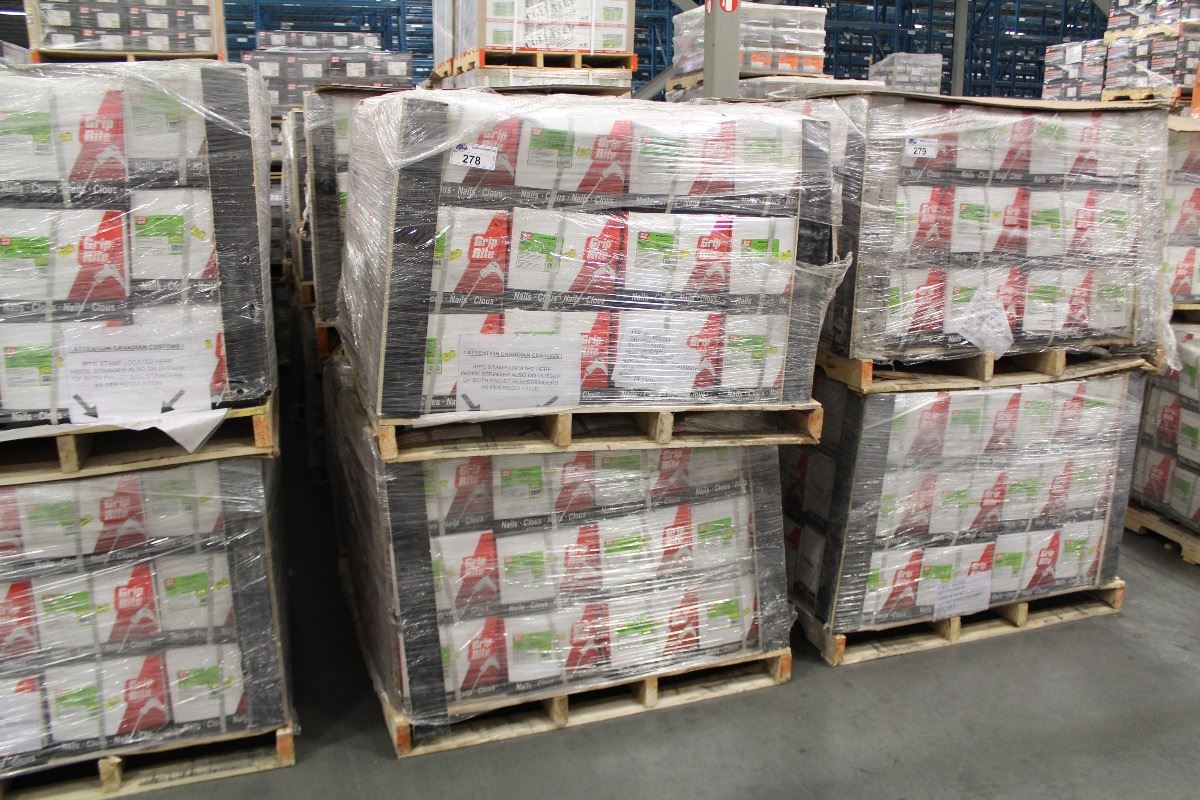 ROW OF APPROX. 8 PALLETS OF 12D X 3-1/4 SPIRAL NAILS