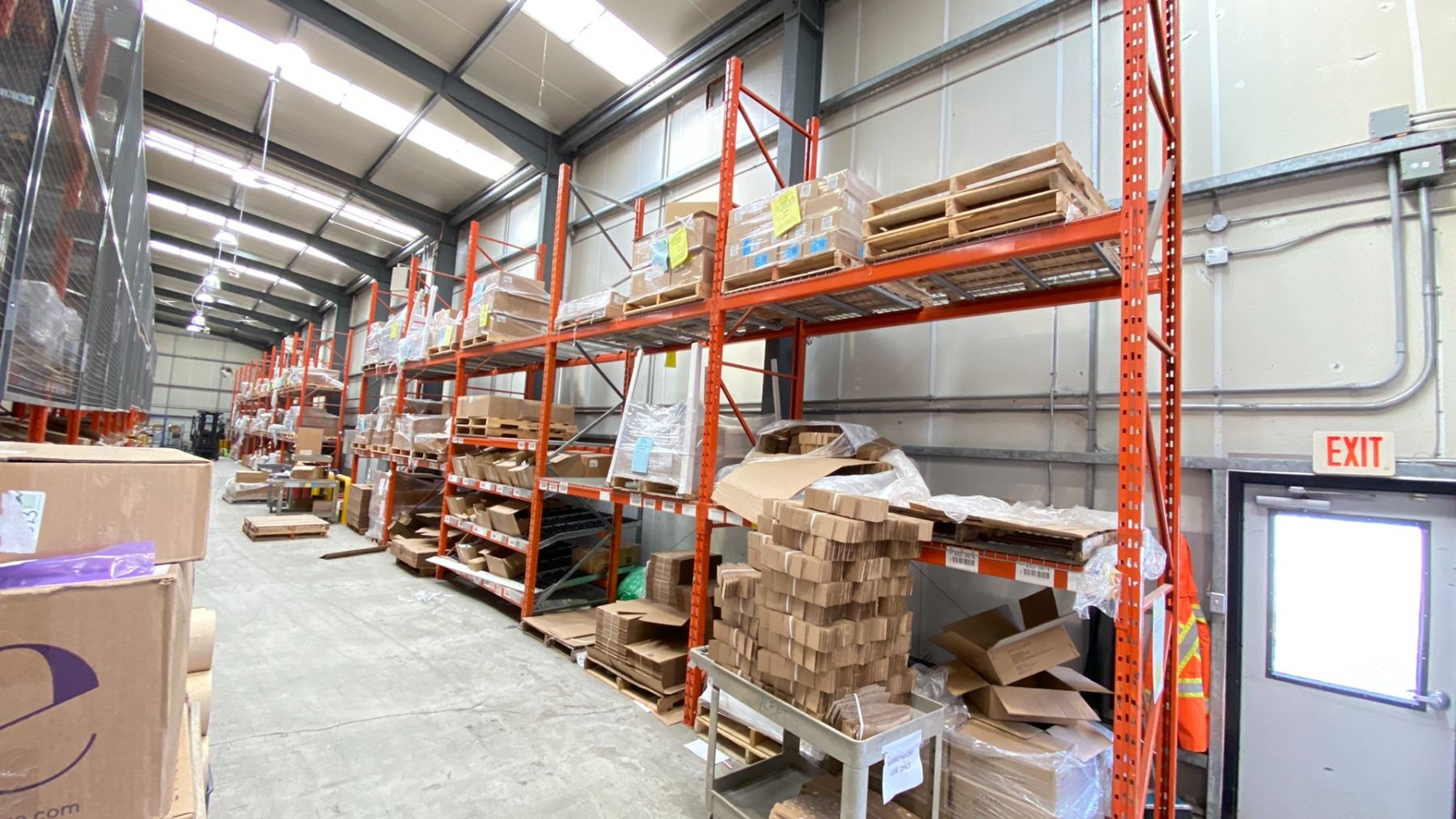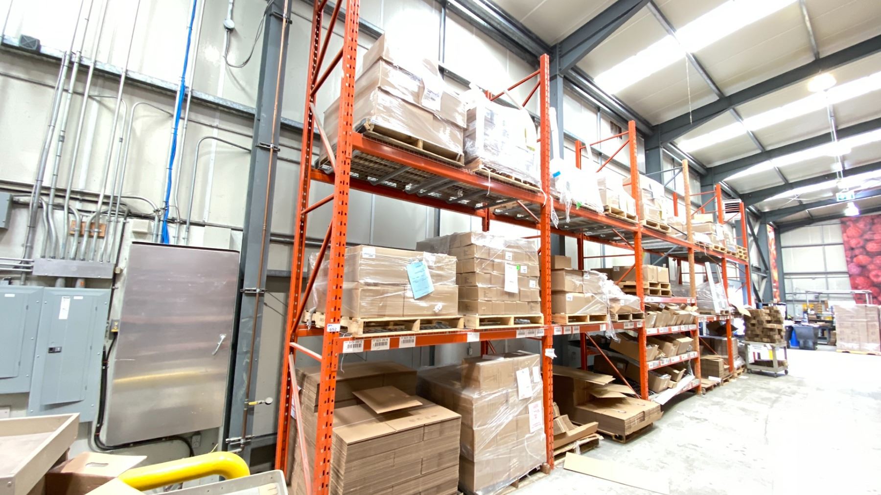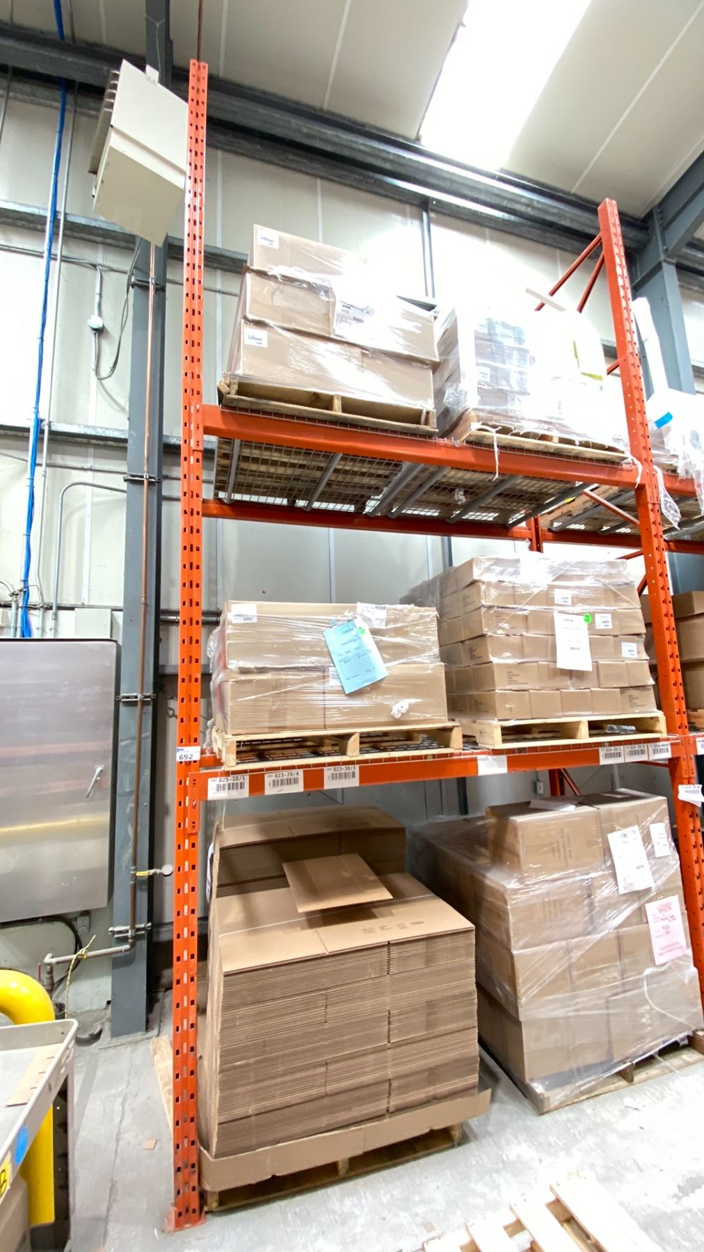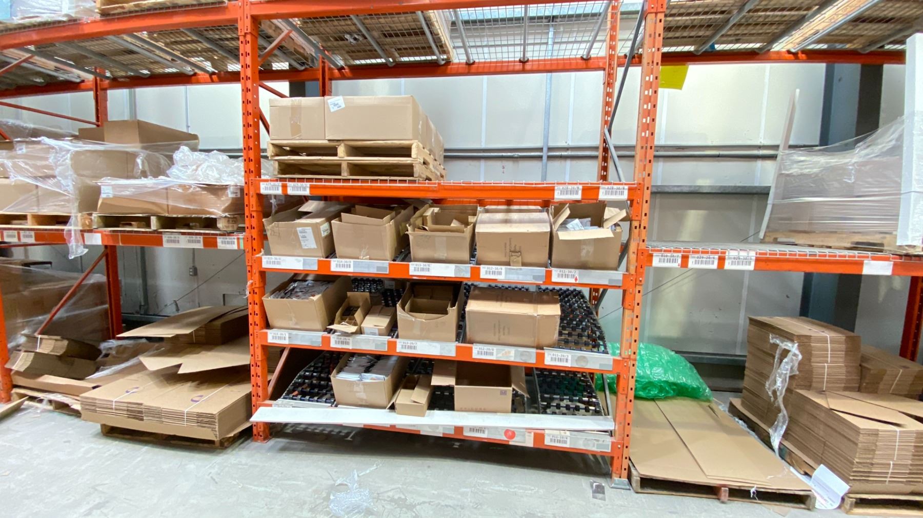 ROW OF RACKING. 6 X 16' HIGH FRAMES, 26 X 8' BEAMS, 20 X 4' WIRE DECKING, 10 X 5' BOX ROLLERS *DISMANTLING AND REMOVAL OF ALL RACKING WILL BE SCHEDULED AFTER THE AUCTION WITH THE BUYERS; REMOVAL PROCESS TO START JUNE 15*