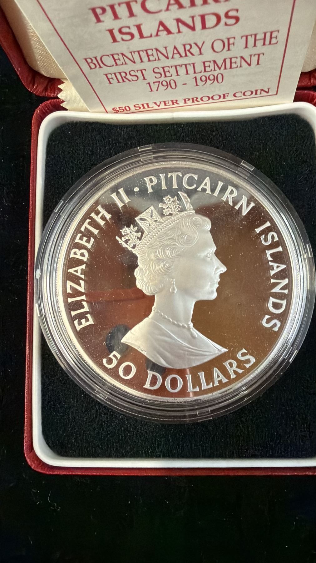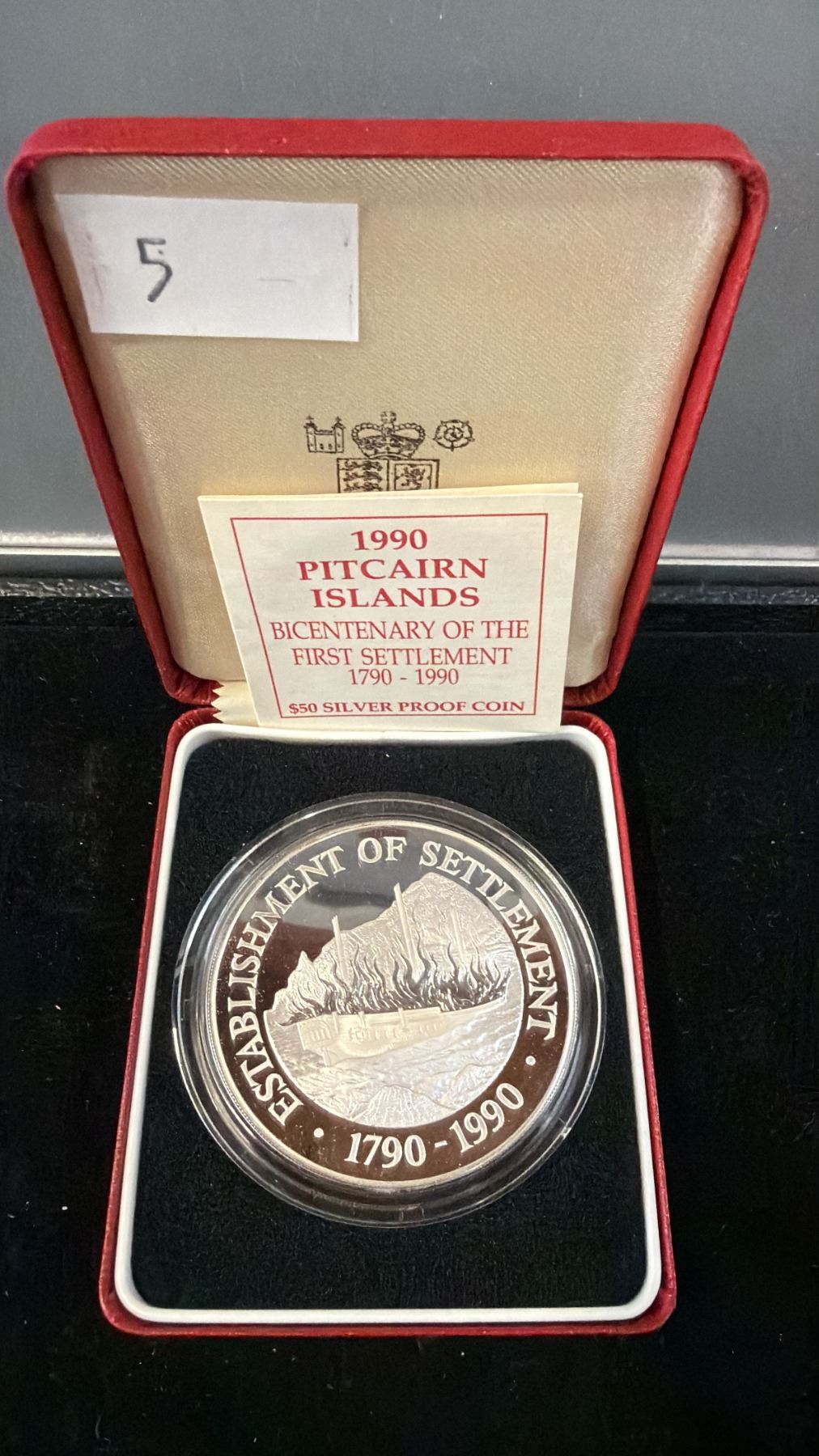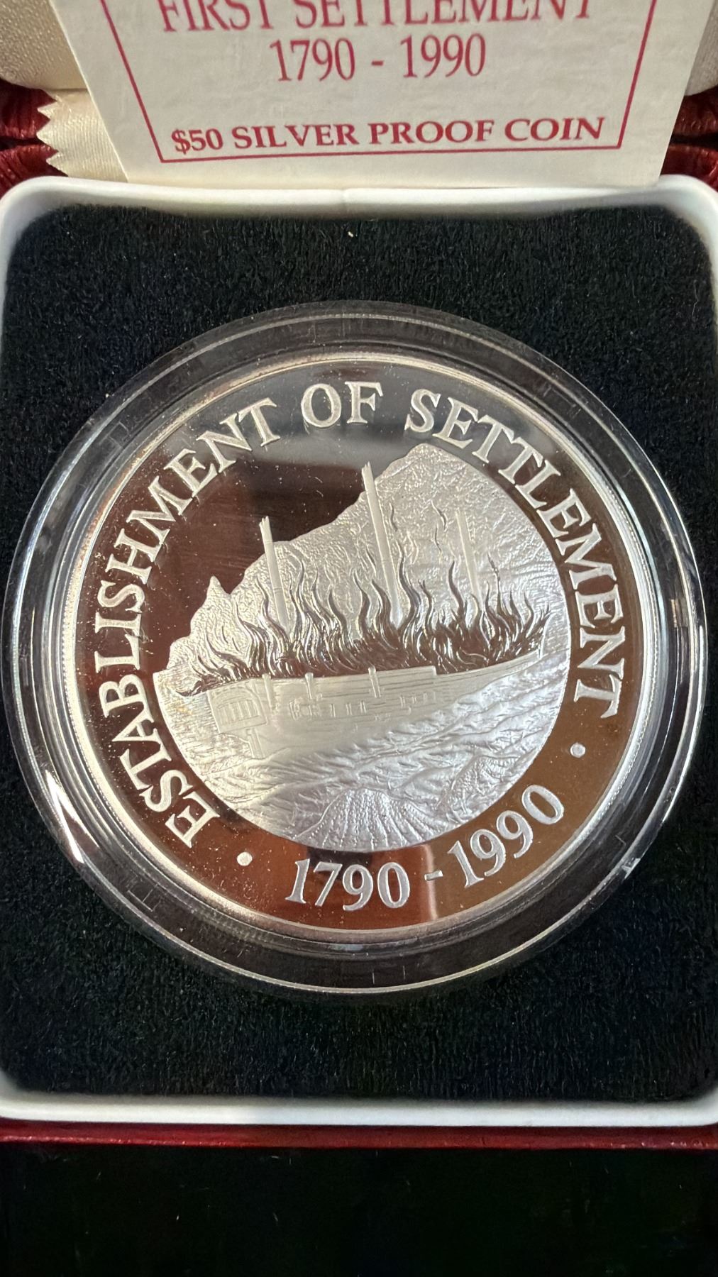ROYAL MINT 5 OUNCE .999 SILVER COIN - ESTABLISHMENT OF SETTLEMENT 1790-1990 50 DOLLAR COIN *MINT UNCIRCULATED*