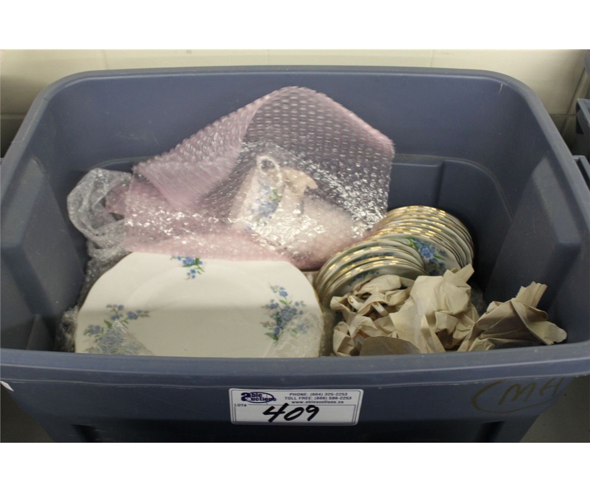 RUBBERMAID CONTAINER CONTAINING ASSORTED BONE CHINA