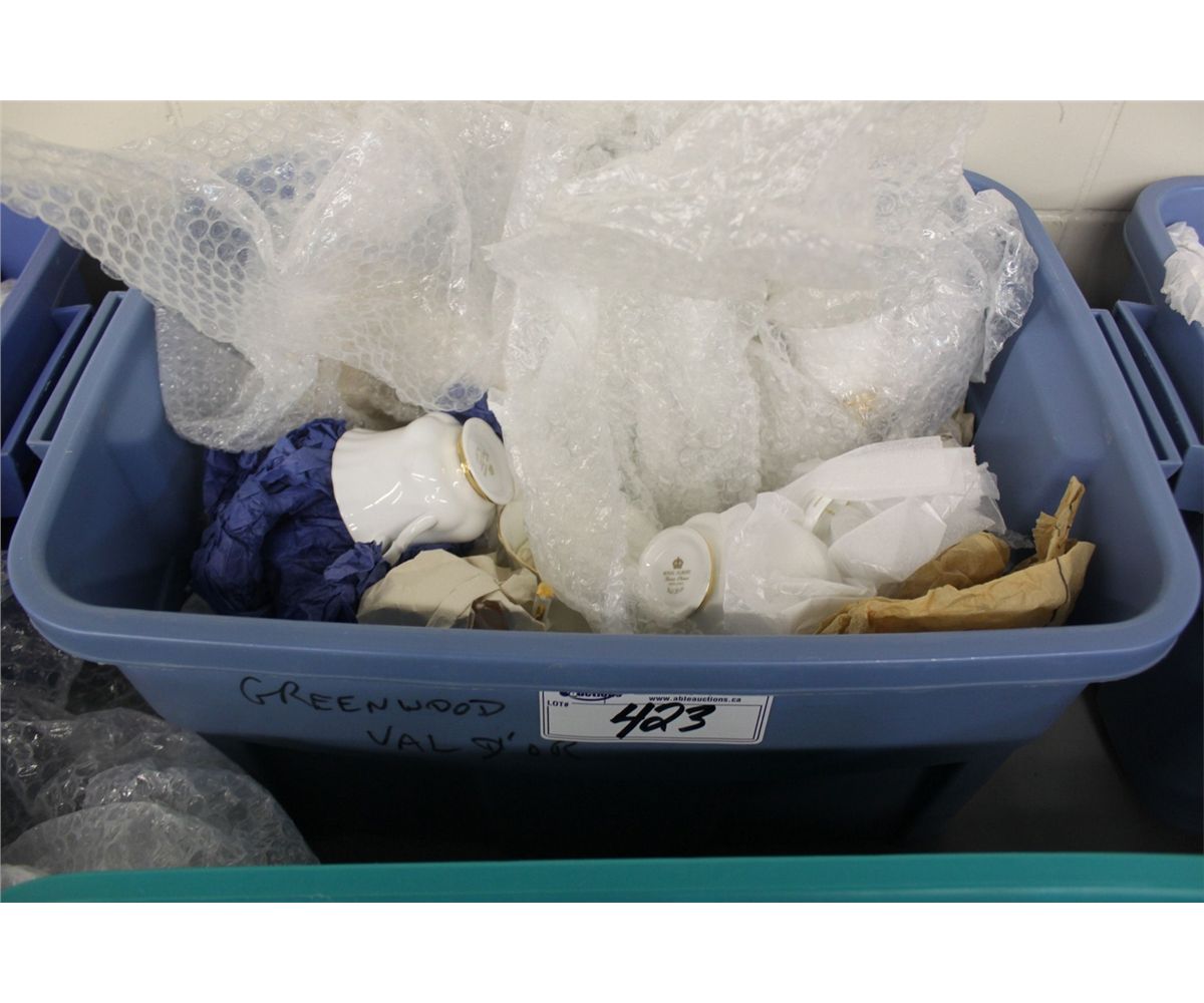 RUBBERMAID CONTAINER CONTAINING ASSORTED BONE CHINA