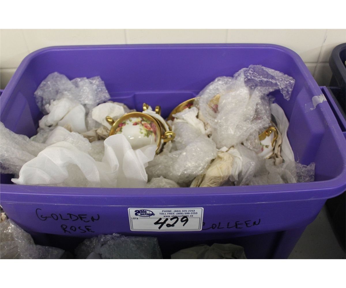 RUBBERMAID CONTAINER CONTAINING ASSORTED BONE CHINA