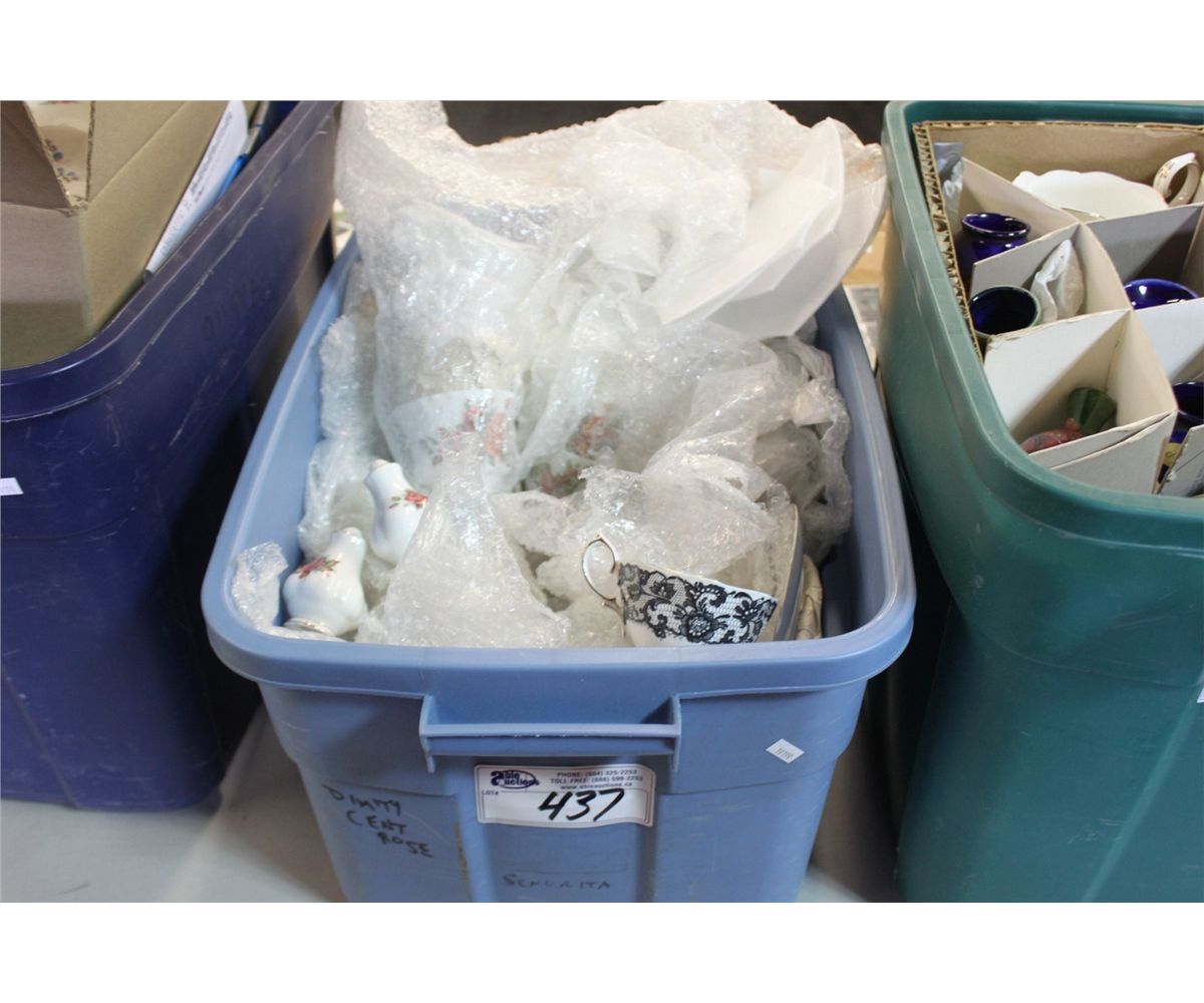 RUBBERMAID CONTAINER CONTAINING ASSORTED BONE CHINA