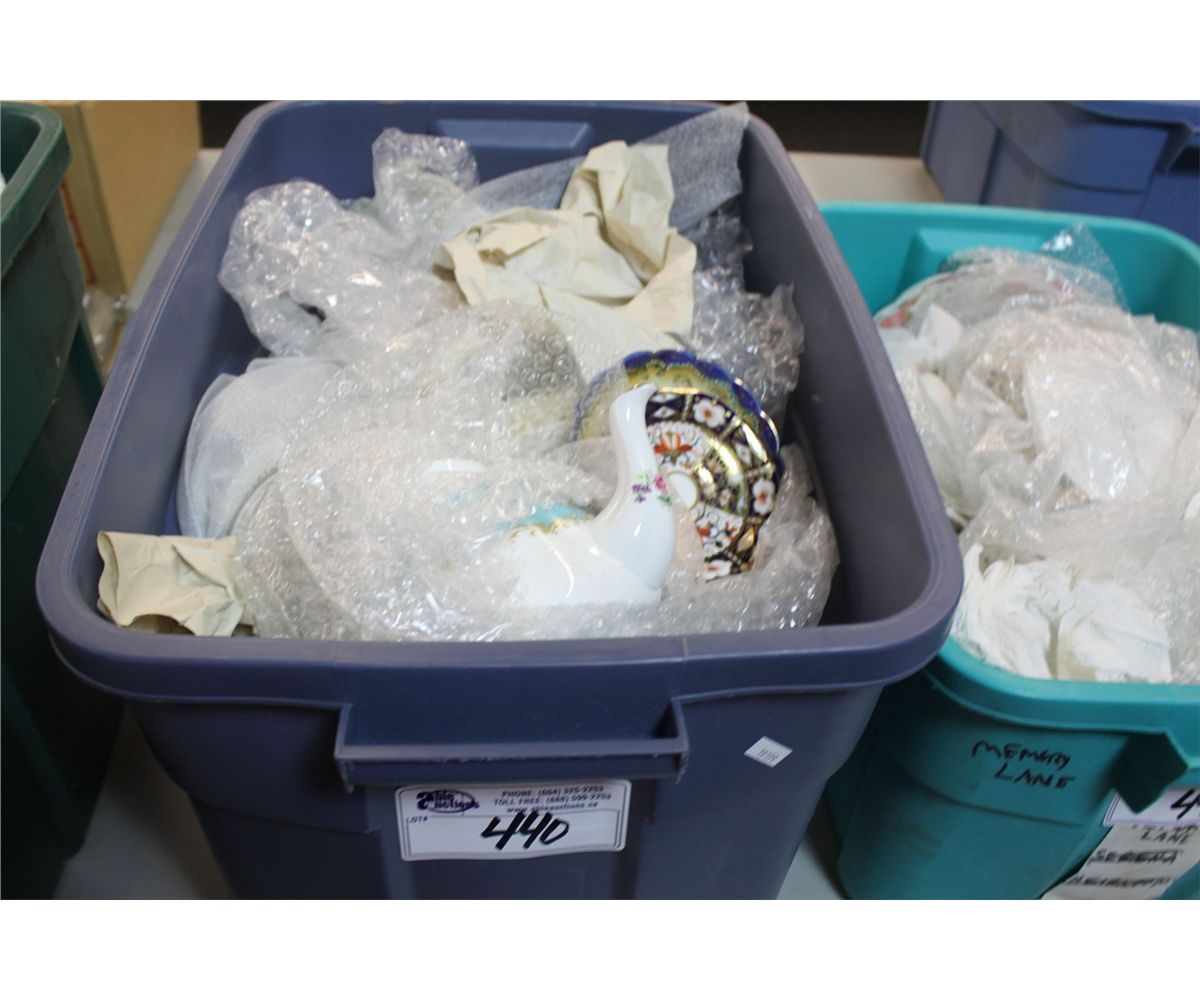 RUBBERMAID CONTAINER CONTAINING ASSORTED BONE CHINA