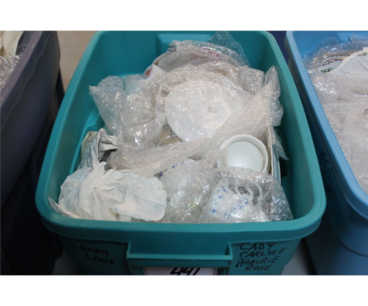 RUBBERMAID CONTAINER CONTAINING ASSORTED BONE CHINA