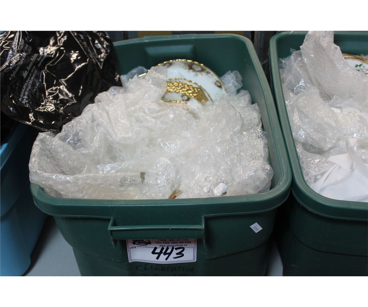 RUBBERMAID CONTAINER CONTAINING ASSORTED BONE CHINA
