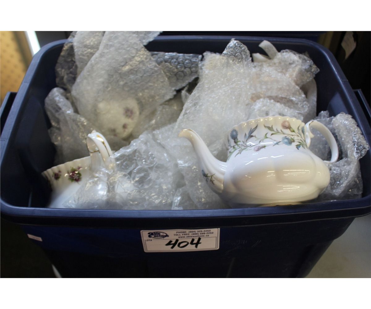 RUBBERMAID CONTAINER CONTAINING ASSORTED ROYAL ALBERT BONE CHINA