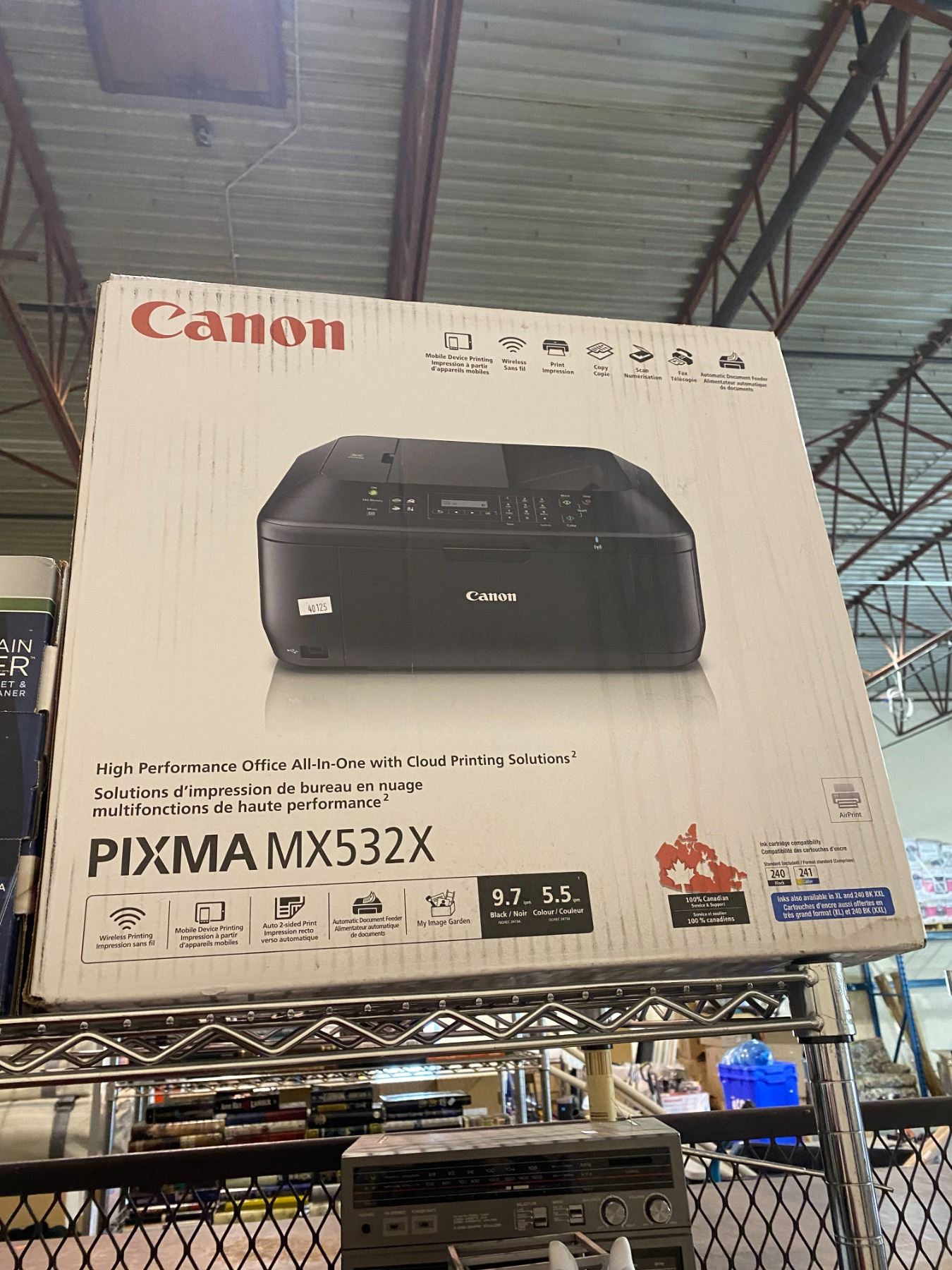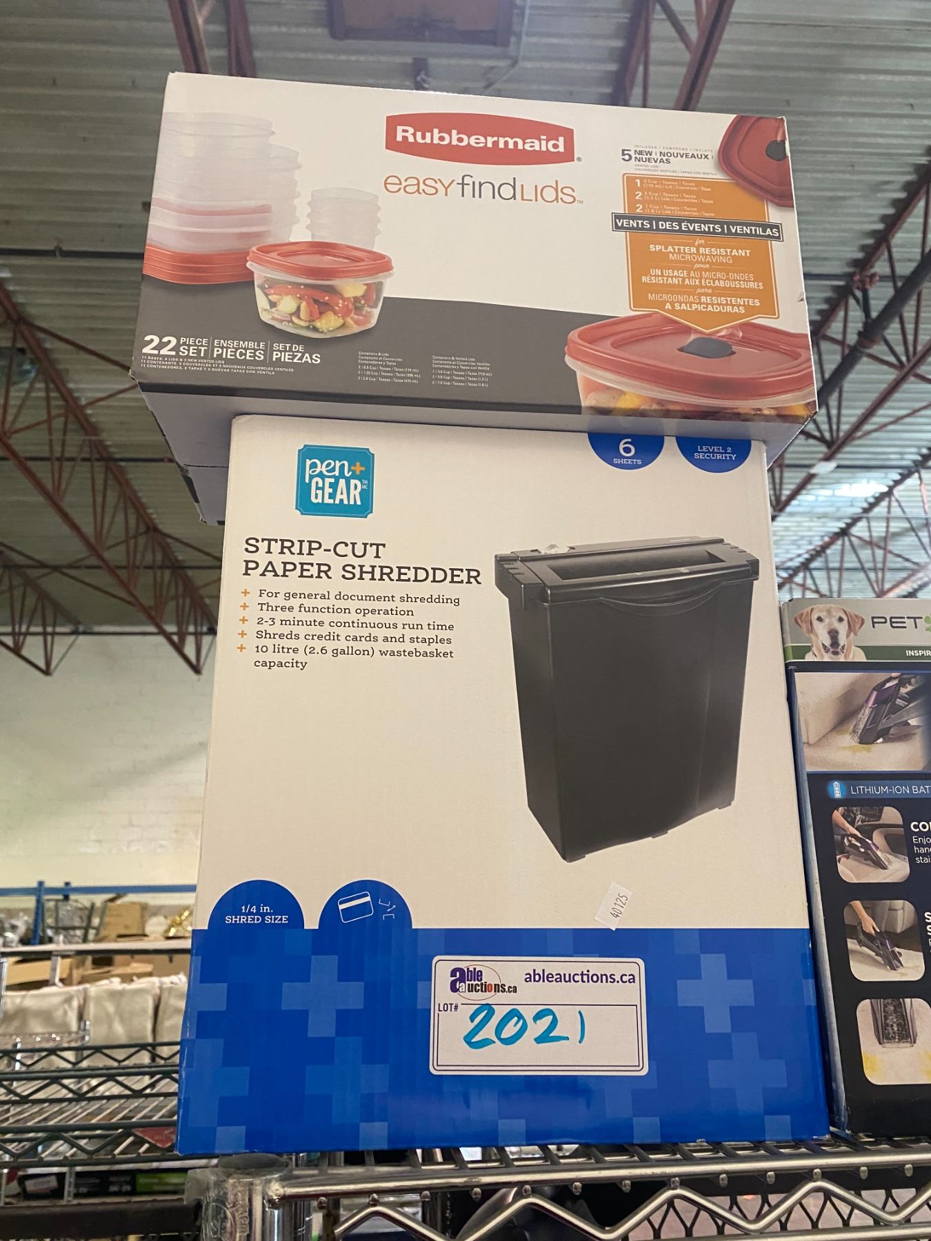 RUBBERMAID EASY FIND LIDS, STRIP-CUT PAPER SHREDDER, CANON PIXMA MX532X PRINTER, BISSELL PET STAIN